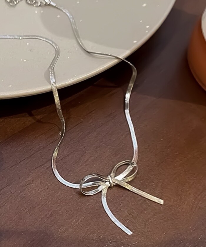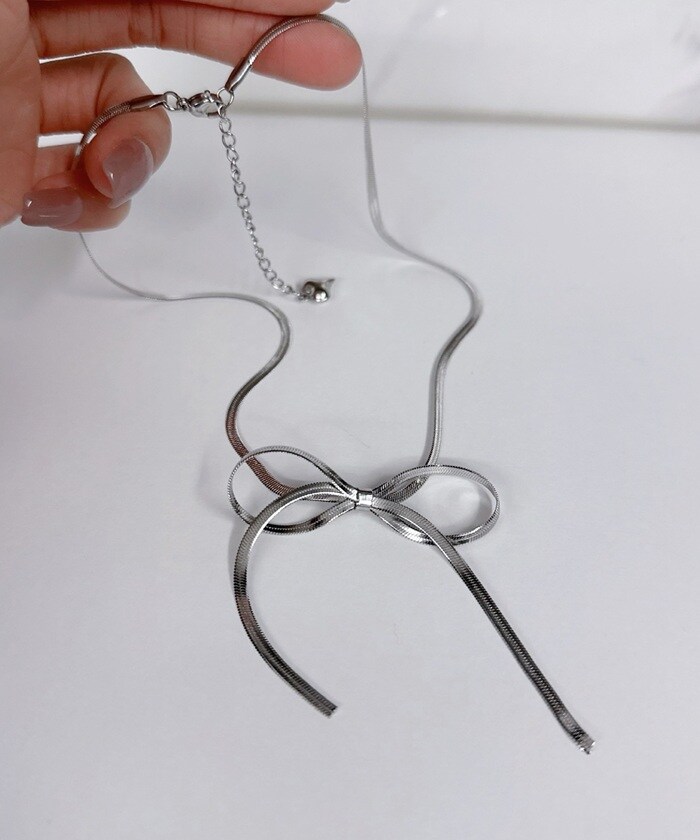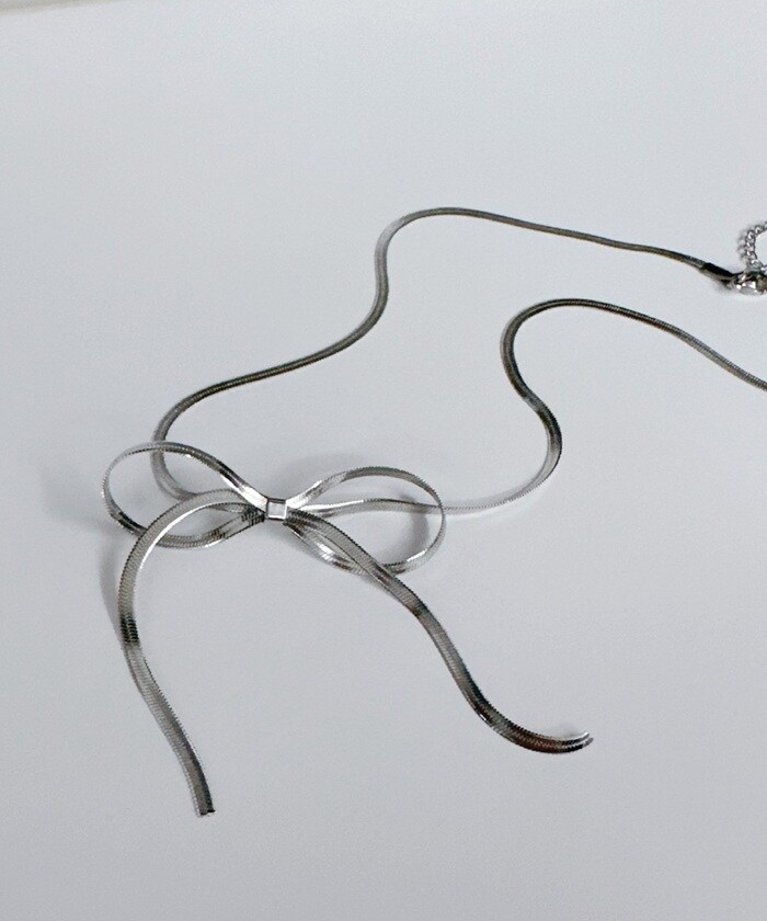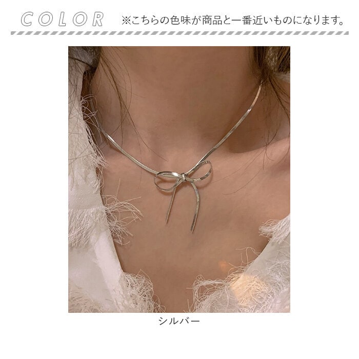 | 商品説明 | スネークチェーンでリボンを結んだデザインのネックレス。可愛い印象を与えながらもシンプルなデザインで甘さを抑え大人可愛く。いつものスタイルを華やかにしてくれるアイテム。 |