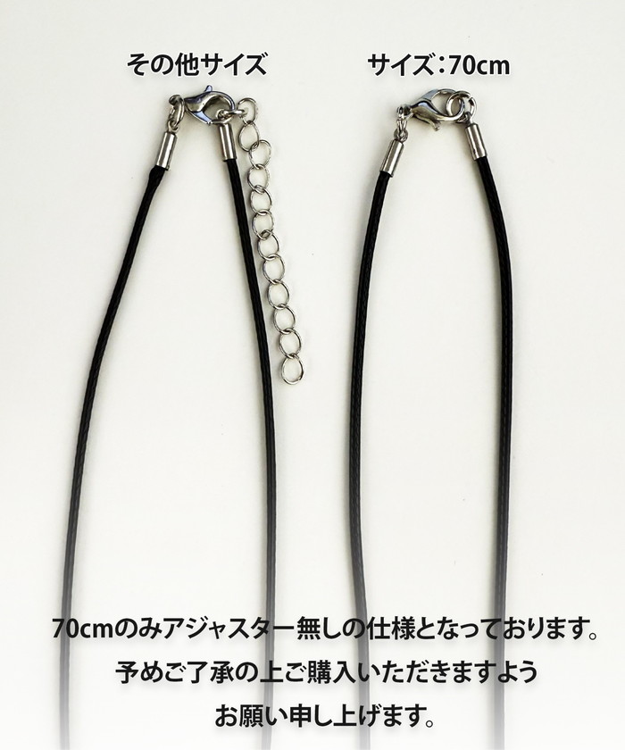 | サイズ | [長さ] 45cm:50.5~55.5cm 50cm:58~63cm 55cm:62~67cm 60cm:68~74cm 70cm:74cm [トップ] 全サイズ:1.4×1.4cm |
