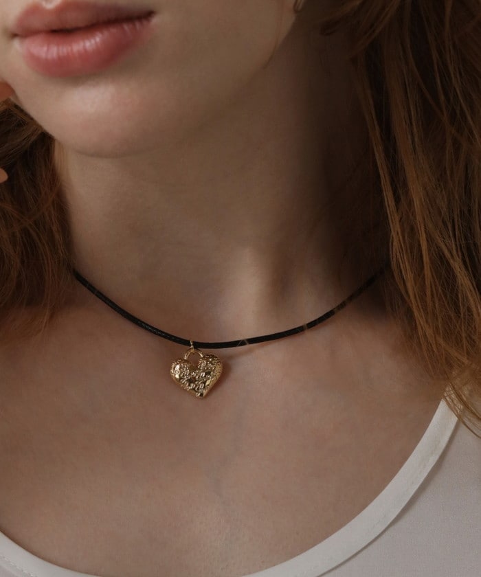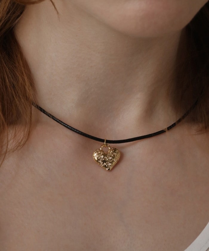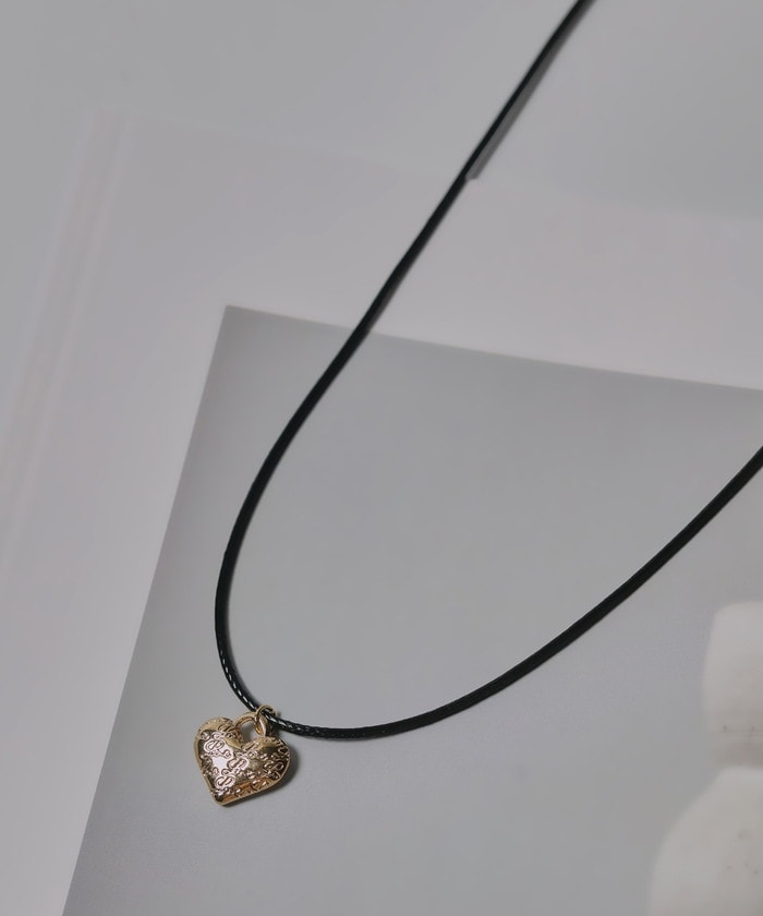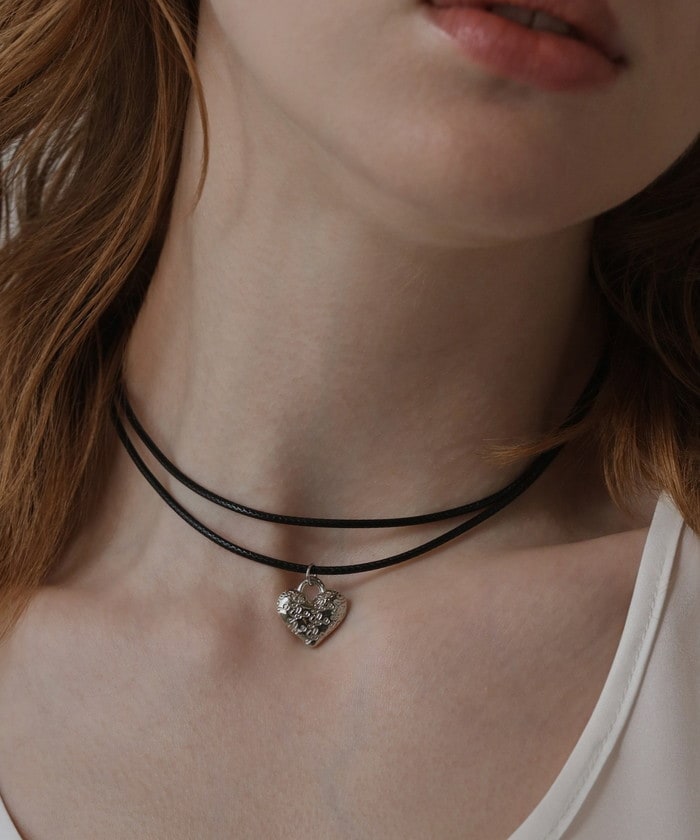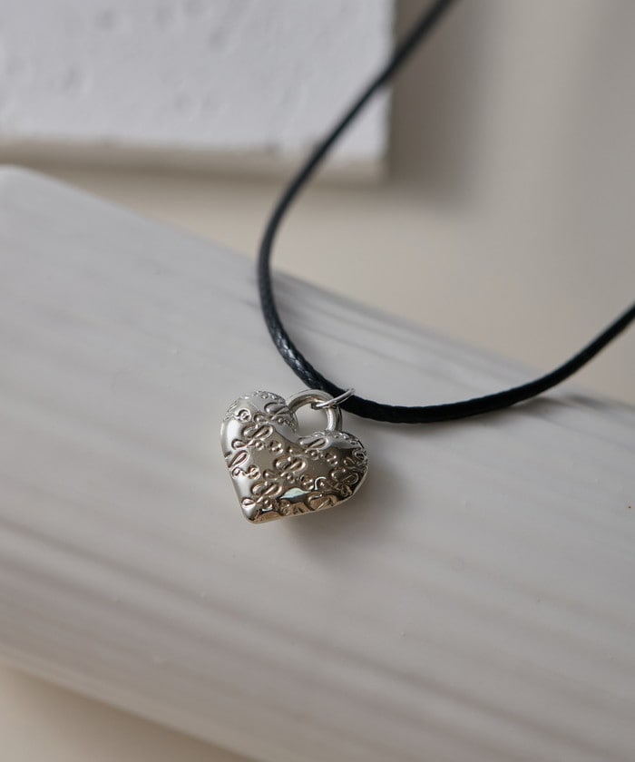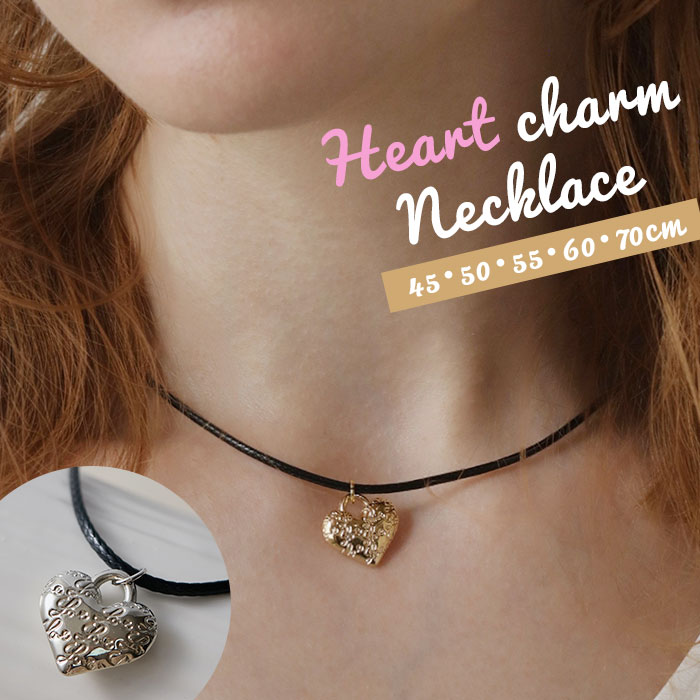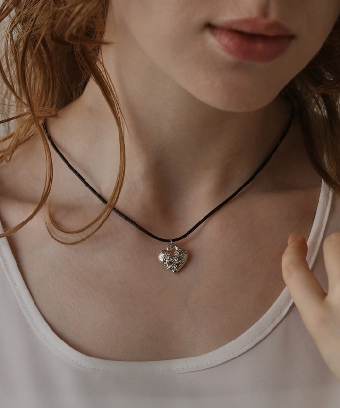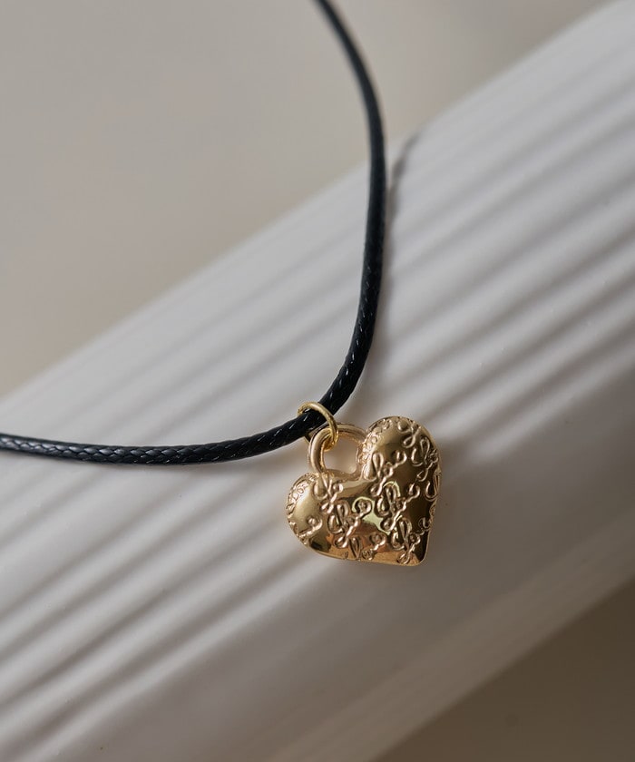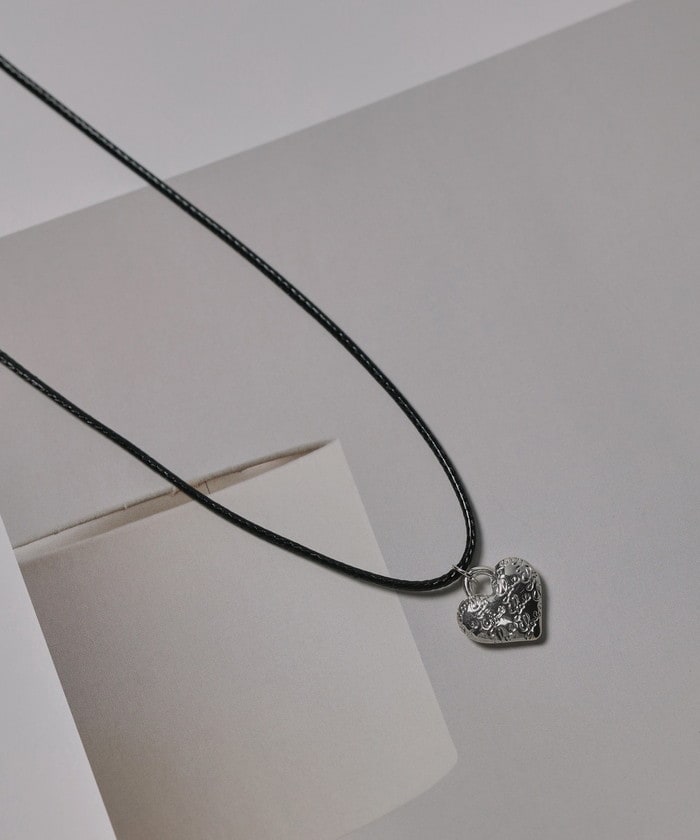 | 商品説明 | 立体的な模様をあしらったハートモチーフがアクセントのネックレス。シンプルなコードネックレスがチャームのディテールを際立たせる。カジュアルから洗練されたファッションまで様々なコーディネートにフィットするアイテム。お好みに合わせて長さを選べる。70cmタイプは二重に巻いてお使いいただくのもおすすめ。※70cmのみアジャスター無しの仕様。※70cm着用画像は紐を二重巻きにして着用。 |