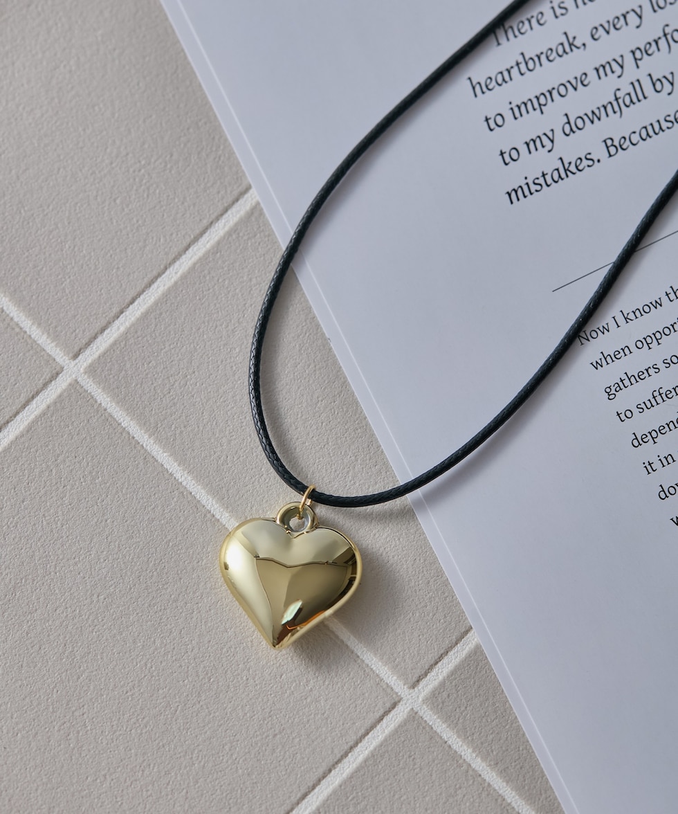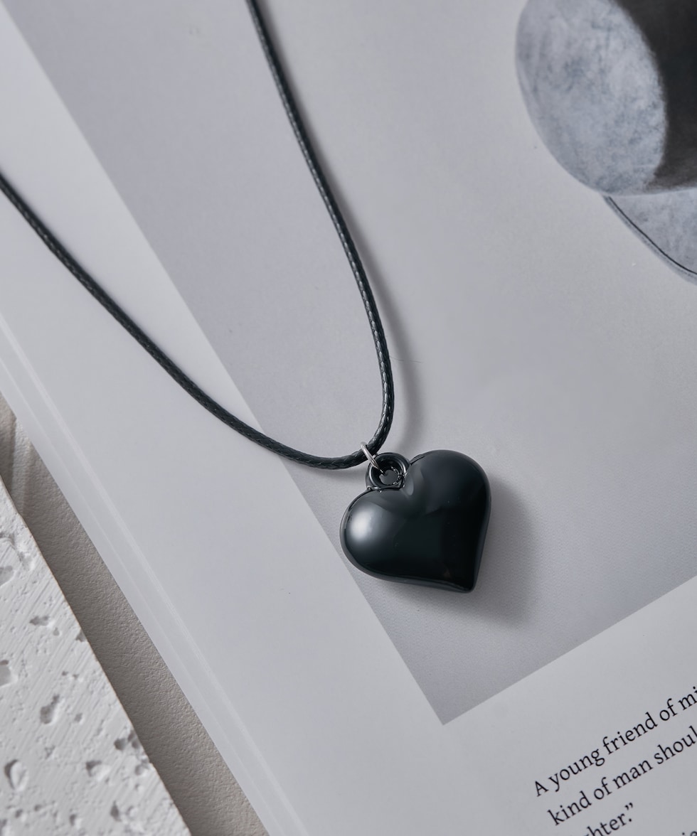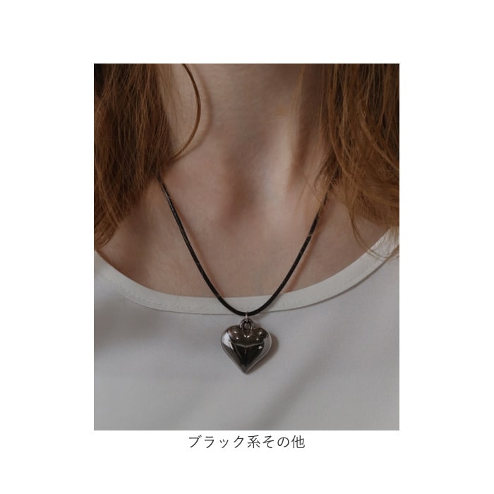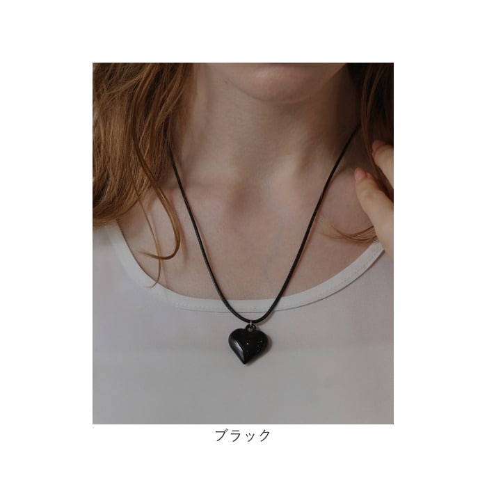 ハートチャームネックレス【ブラック】【70cm】