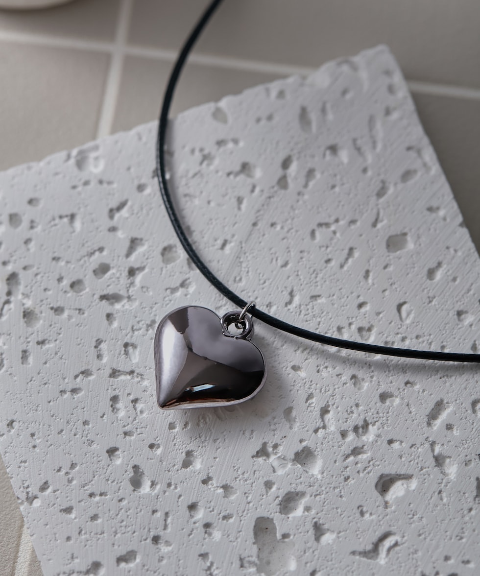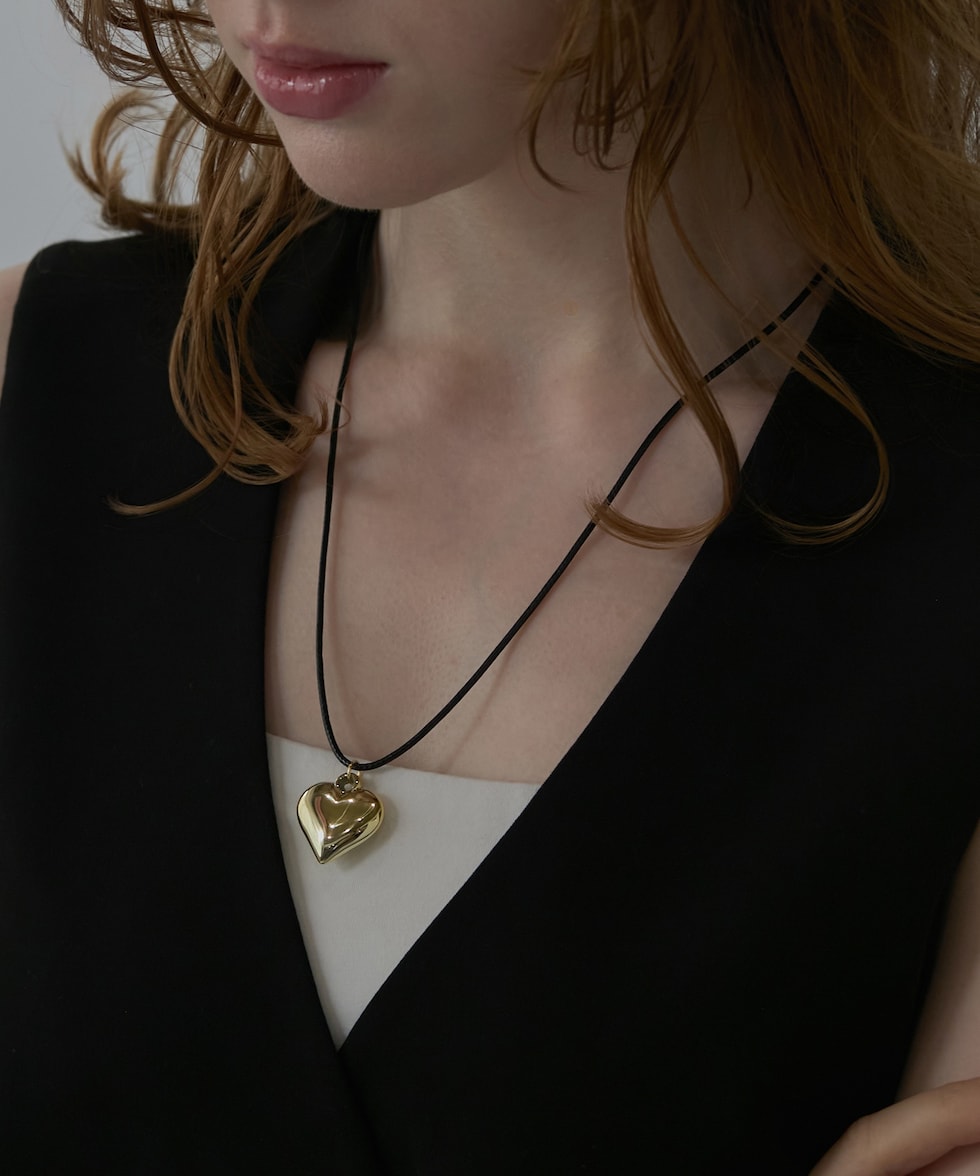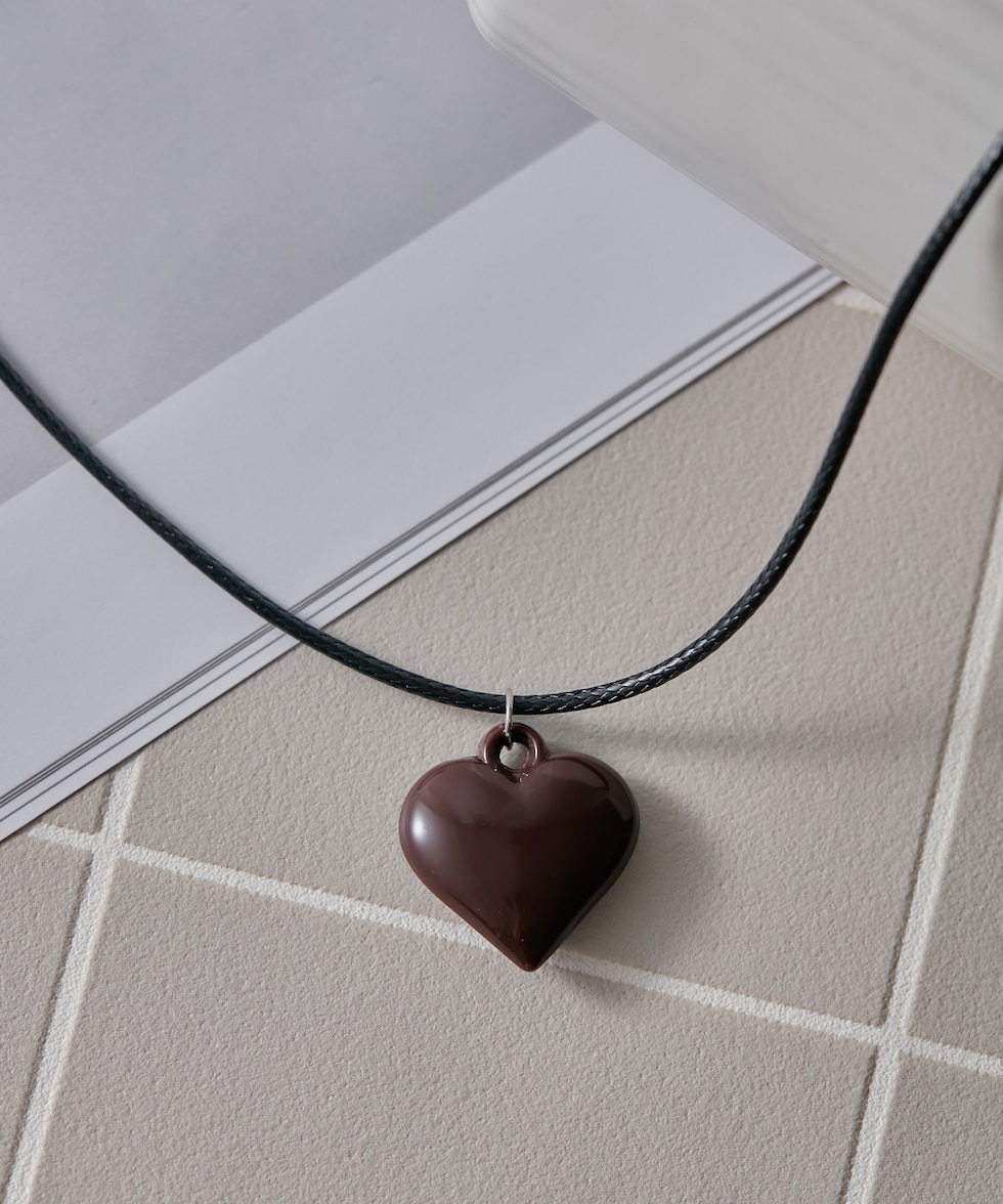 ハートチャームネックレス【ブラック】【70cm】