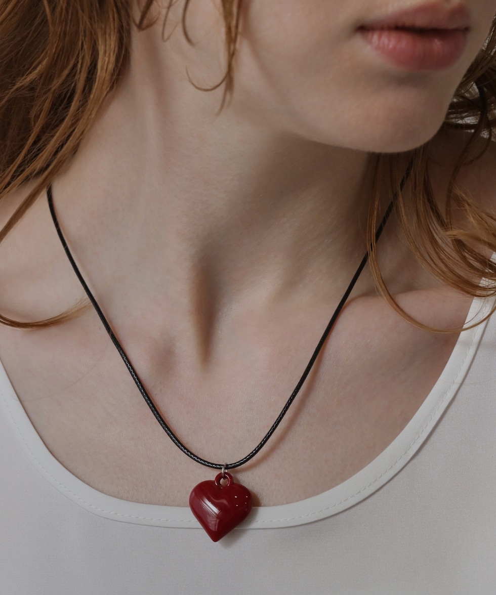 | 商品説明 | チャームカラーが選べるブラックコードネックレス。存在感のあるハートチャームが目を引き女性らしい雰囲気を引き立てる。豊富なカラー&サイズ展開であなたにぴったりのお気に入りが見つかる。70cmタイプは二重に巻いてお使いいただくのもおすすめ。※70cmのみアジャスター無しの仕様。※70cm着用画像は紐を二重巻きにして着用。 |