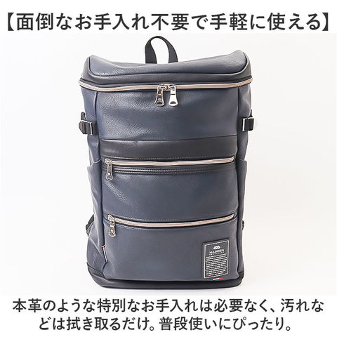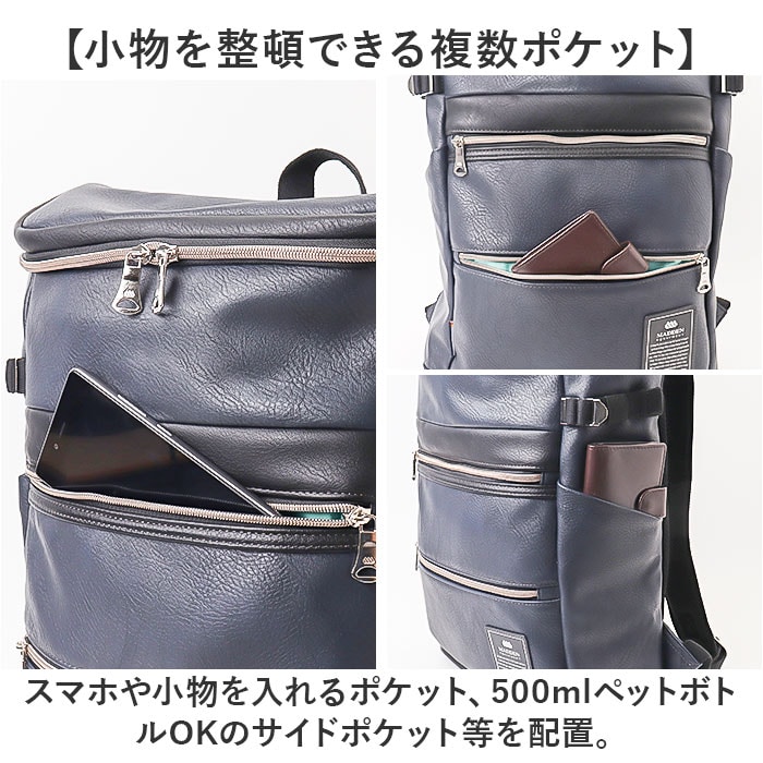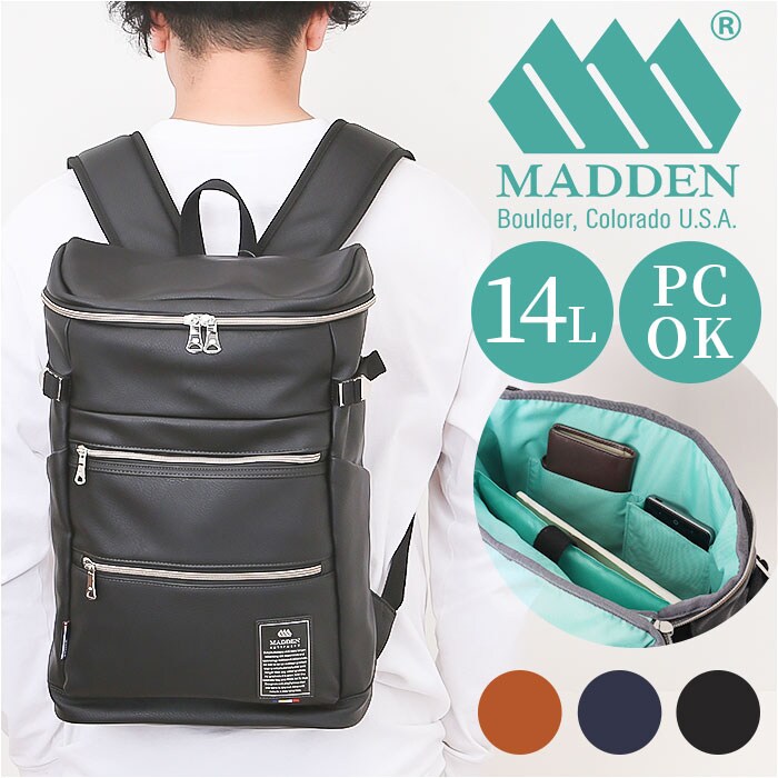 | 商品説明 | 【おしゃれに持ち歩ける相棒】すっきりまとまるスマートシルエット。MADDEN EQUIPMENT ボックスリュック。【ビジネスもデイリーユースもお任せ】フェイクレザーを使い、品よく仕上げたアイテム。落ち着いた風合いで、シーンを問わずマッチ◎【ガバっと開いて出し入れスムーズ】左右どちらからも開くダブルファスナーで上部が180度オープン。取り出しやすいボックス型。【A4もノートPCもラクラク】A4サイズの書類がすっぽり。デバイス用のクッションスリーブも装備した容量約17L。【嬉しいメイン直結ファスナー付き】サイドファスナーを開くと、メインルームにクイックアクセス。背負ったまま小物を取り出し◎【小物を整頓できる複数ポケット】スマホや小物を入れるポケット、500mlペットボトルOKのサイドポケット等を配置。【荷物の量に合わせて横マチを調節】両サイドに、フィット感を調節できるベルト付き。フォルムもキープ。【負担をかけず背負い心地快適】背面とショルダーベルトに、クッションをプラス。ムレにくいメッシュ仕様。【リュックを下ろすシーンで便利】電車の中などで下ろす際や、混雑した車内で手持ちしやすい持ち手付き。【面倒なお手入れ不要で手軽に使える】本革のような特別なお手入れは必要なく、汚れなどは拭き取るだけ。普段使いにぴったり。【視認性の高いエメラルドの内生地】ブランド創業の地、コロラド州にあるエメラルド湖がテーマ。機能性とブランドの世界観を演出。【ポケット仕様】内側:面ファスナーベルト付きクッションスリーブ×1、オープンポケット×1、スマホ用クッションポケット×1前面:ファスナーポケット×2サイド:オープンポケット×2 |