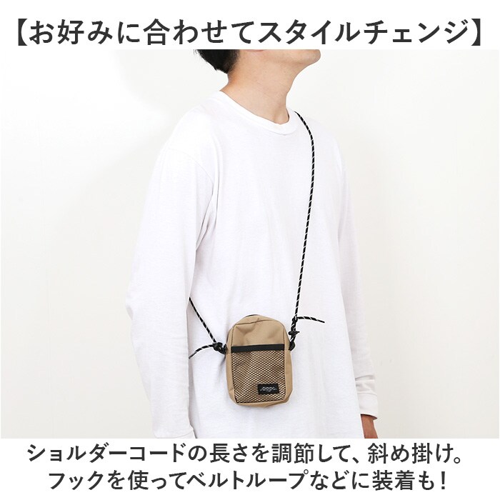 | 商品説明 | 【色んなシーンで頼りになる相棒】貴重品をまとめて、身軽にお出かけ!「ナイロンメッシュ ミニショルダーポーチ」。【カジュアルスタイルにマッチ】Tシャツにデニムなど、ラフなコーデと相性抜群!気軽に持ち出せるミニショルダーポーチ。【お好みに合わせてスタイルチェンジ】ショルダーコードの長さを調節して、斜め掛け。フックを使ってベルトループなどに装着も!【開閉スムーズ、安心のファスナー式】ガバっと開いて取り出しやすく、ファスナーを閉じれば中身の飛び出しをガード。【必要最低限をひとまとめ】コインケースやスマホ、エチケットグッズ等をIN。アウトドアやレジャーでのサブ使いも。【サクッと取り出せて迷子知らず】内側と前面にポケットを配置。細々した物も、定位置に入れて探す手間なし◎【軽やかな使い心地でノンストレス】コンパクトサイズ&体に負担をかけない軽量設計。疲れを軽減できるのが嬉しいポイント。【ちょっとの雨なら大丈夫】表面にはっ水加工を。汚れや水滴を弾きやすく、お手入れも拭き取るだけ。(※)完全防水ではありません。少しの水は弾きますが、濡れた際はすぐに拭き取ってください。【お揃いOK☆ユニセックスデザイン】シンプルなデザインに、落ち着きのあるカラー。お揃いやシェアも。【ポケット仕様】内側:オープンポケット×1前面:メッシュポケット×1 |