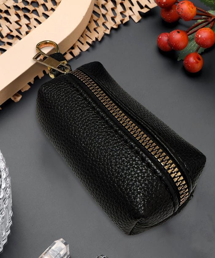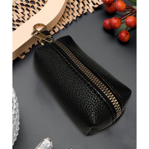 ファスナー付きコンパクトPUレザーライクキーケース【ブラック】