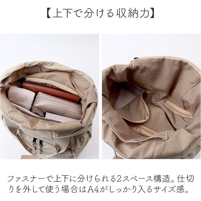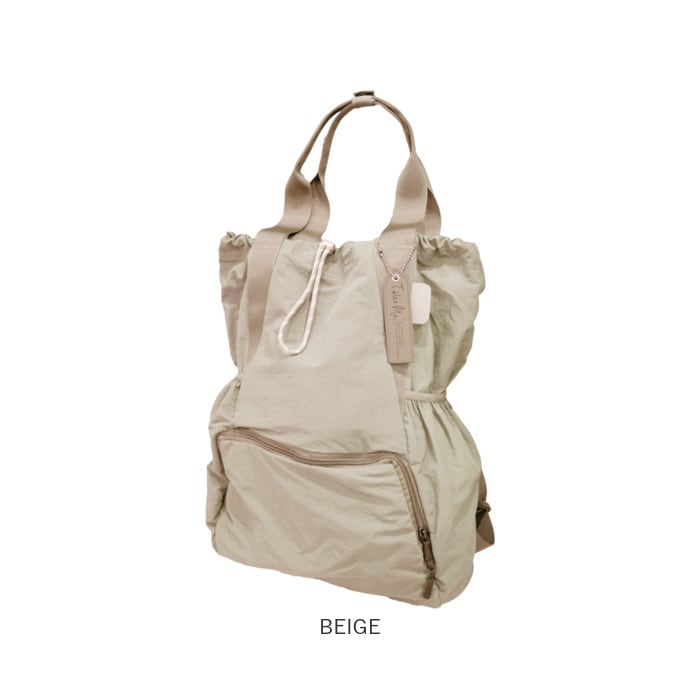 | 商品説明 | 【カンタン仕分け上手】メインルームが上下に分かれて整頓上手♪変身する軽量巾着バッグが「TakeMe」から発売。【スタイルで選べる使い方】トートにもリュックにもなる2WAY仕様で通勤も休日も快適♪【軽量設計】長時間持ち歩いても疲れない◎【巾着タイプ】バッグの上部は巾着のように絞れるタイプで調節もラクラク。【保冷機能で安心携帯】サイドポケットは保冷生地使用でドリンクをほどよくキープ〇【上下で分ける収納力】ファスナーで上下に分けられる2スペース構造。仕切りを外して使う場合はA4がしっかり入るサイズ感。【下部へつながる便利さ】バッグ下部につながるポケットで荷物の出し入れがスムーズ〇【すっきり収まる工夫】ショルダーベルトを背面ポケットにしまえて邪魔にならない。【雨の日でも安心】撥水加工なので突然の雨でも中身をしっかりガード!【おしゃれな革タグ】革のロゴタグがシンプルなデザインに品のあるアクセント! |