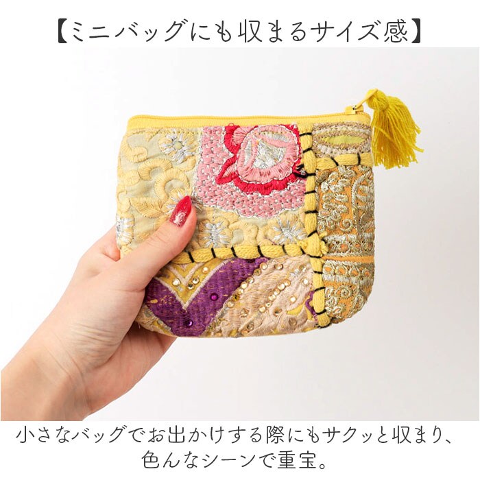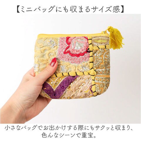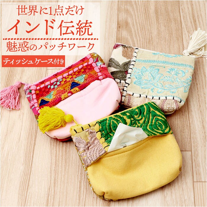 | 商品説明 | 【世界に1点だけの特別なポーチ】インド伝統☆魅惑のパッチワーク。「カンバディアパッチ ティッシュケース付ポーチ」。【北インドに伝わるカンバディア】サリーやクルなど、伝統衣装の希少なヴィンテージ布を手で繋ぎ合わせてリメイク。【色柄の異なる世界に1つのデザイン】華やかな刺繍やビーズが施され、個性の光る仕上がり。同じものが1つとしてなく貴重。(※)生地のデザインや配置など、1点ずつ異なります。【ティッシュの取り出しがラクラク】背面にポケットティッシュを。中央から取り出せて、重なり部分があるので埃が入らず衛生的。【開閉スムーズ、安心のファスナー式】サッと開いて取り出しやすい、ファスナー開口。ファスナーを閉じれば中身の飛び出しをガード。【小さなアイテムも迷子知らず】バッグの中で散らばりがちな、リップや常備薬等を収納。バッグを変える時も忘れ物防止に。【ミニバッグにも収まるサイズ感】小さなバッグでお出かけする際にもサクッと収まり、色んなシーンで重宝。【大切な方へのギフトにもおすすめ】持ち歩くだけで気分もアップしそうなデザイン。人と被ることなく、贈り物にも最適。 |