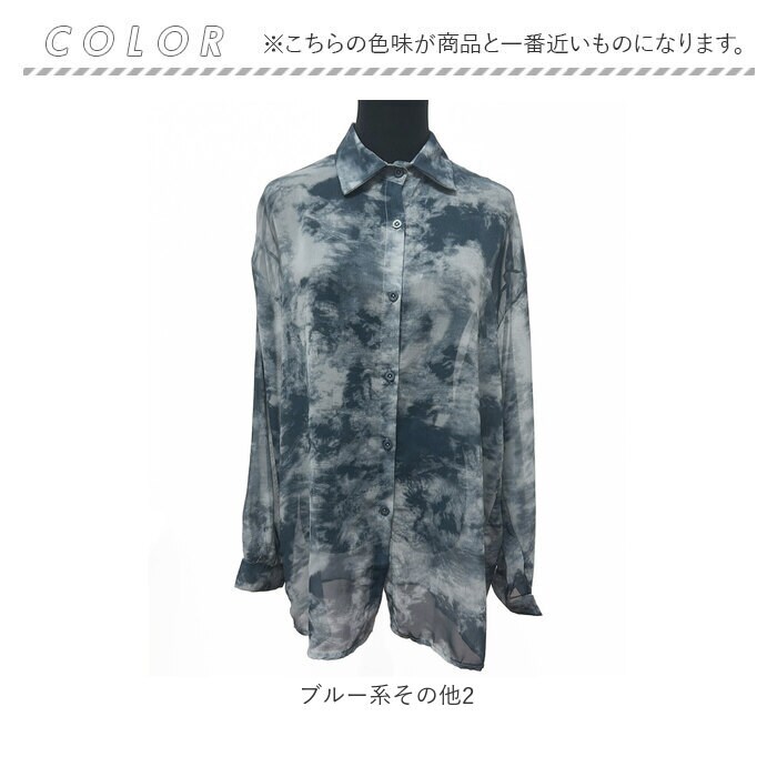 タイダイ柄 長袖シアーシャツ【ブルー系その他2】