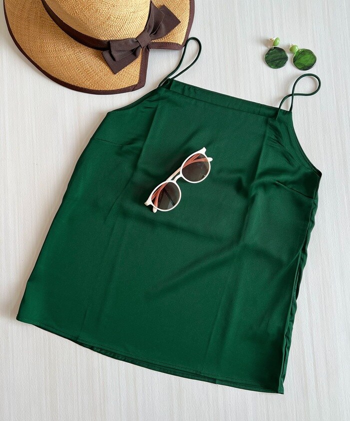 エレガントシルクタッチキャミソール【グリーン】【Lサイズ】