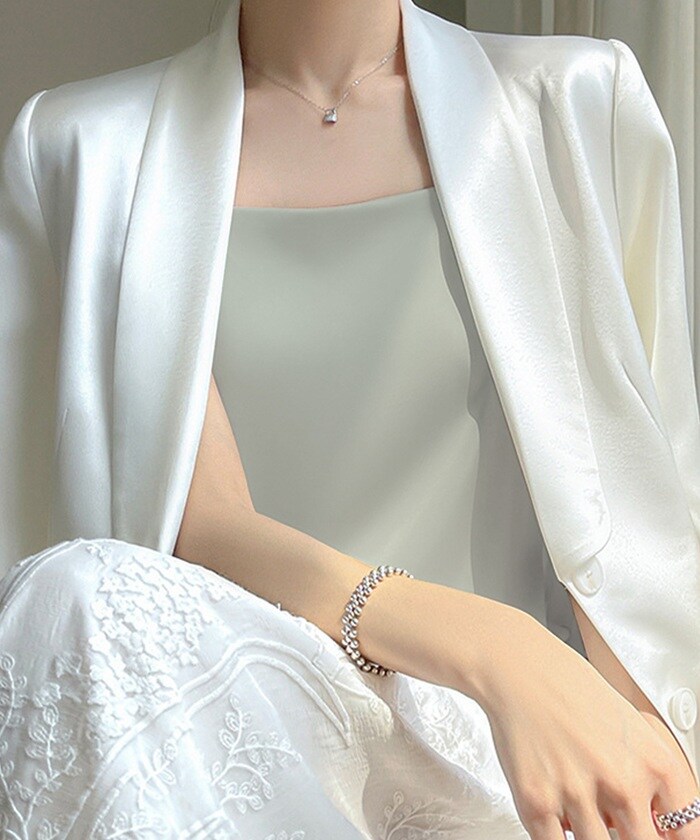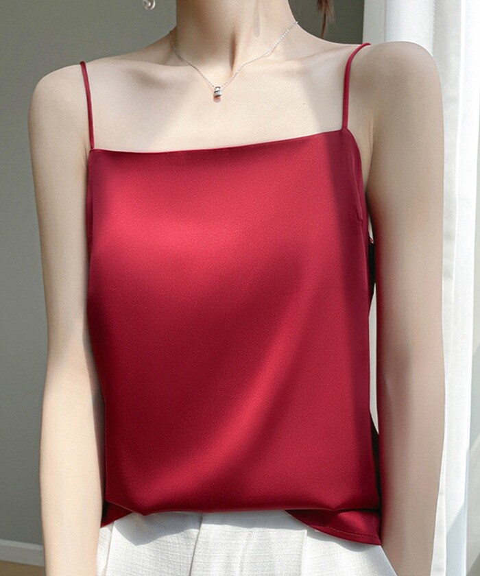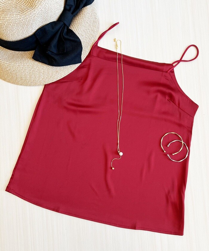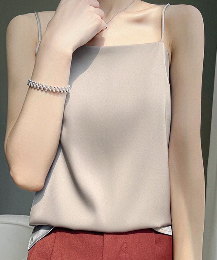 | 商品説明 | 滑らかなシルクタッチ素材が魅力のキャミソール。上品な光沢感が美しく、肌に心地よく馴染む贅沢な着心地。二重生地仕様で透けにくく、インナーとしてはもちろん、一枚でも安心。華奢なストラップが女性らしさを引き立て、デイリーから特別なシーンまで幅広く活躍。洗練された大人のスタイルを叶える、エレガントな一着。モデル身長/体重:154cm/42kgモデル着用サイズ:MEDIUM |