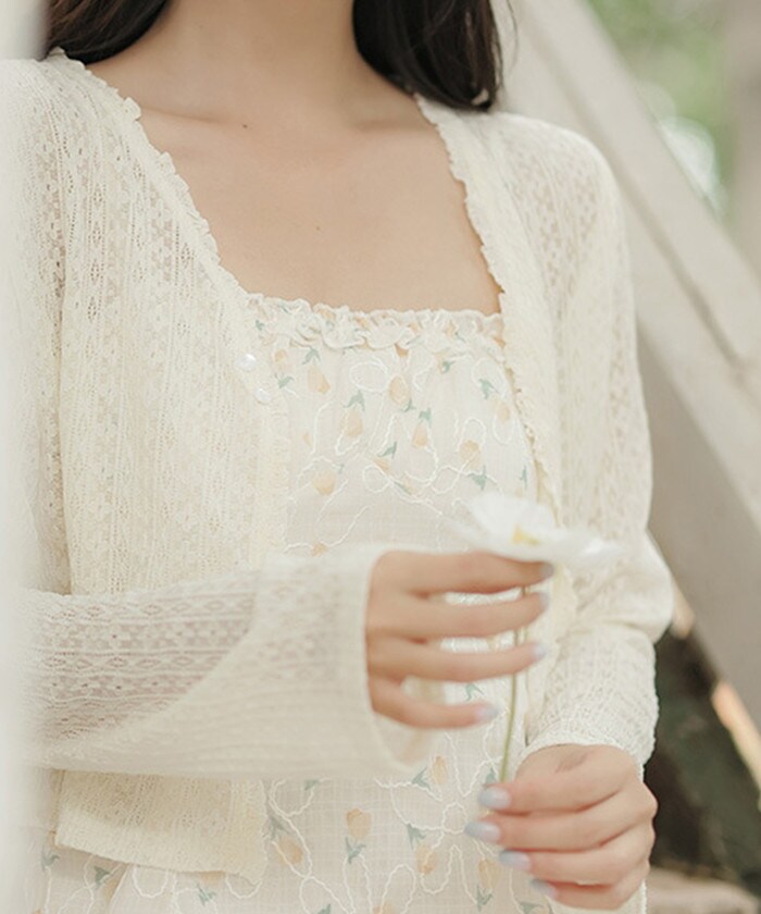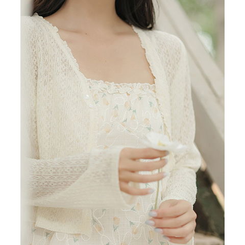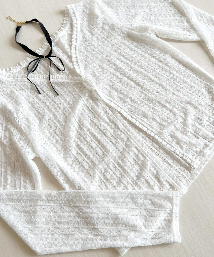 フェミニンレースカーディガン【ホワイト】
