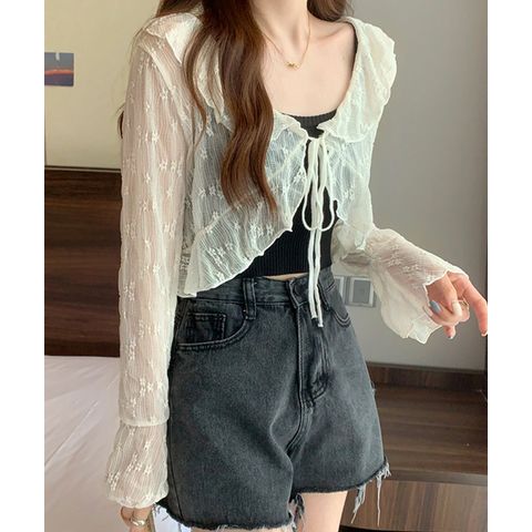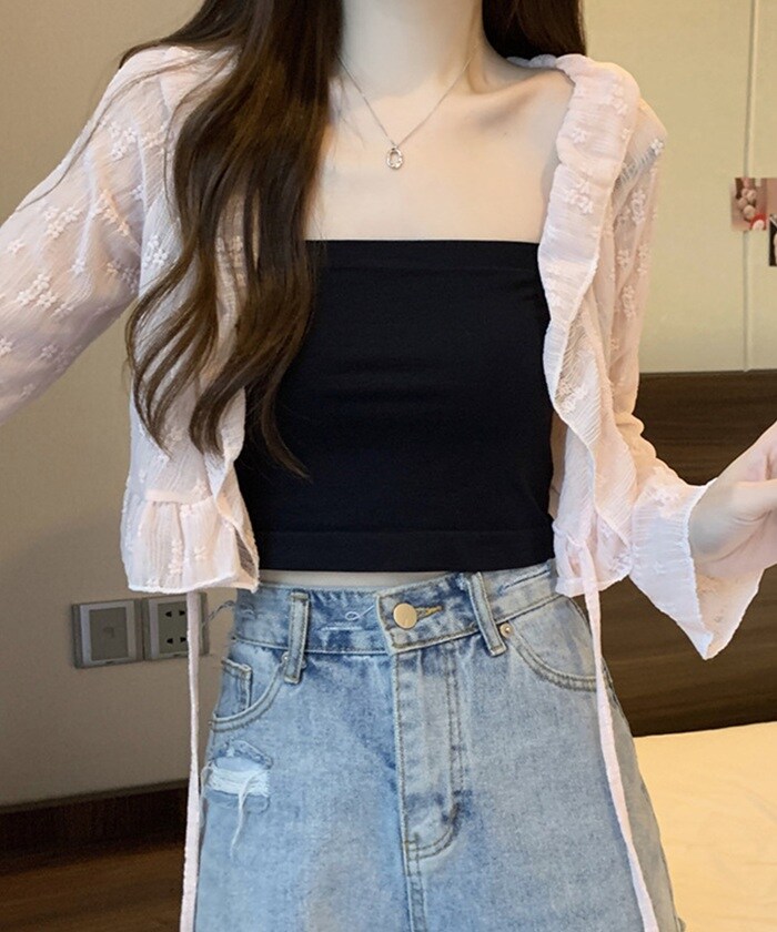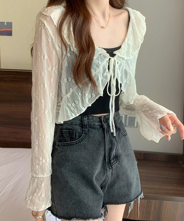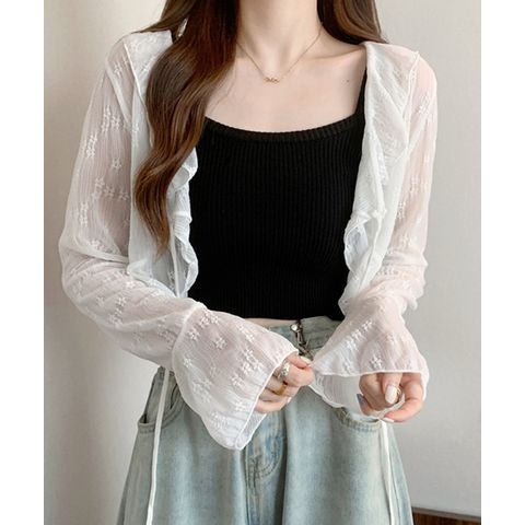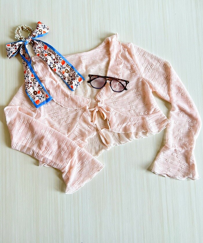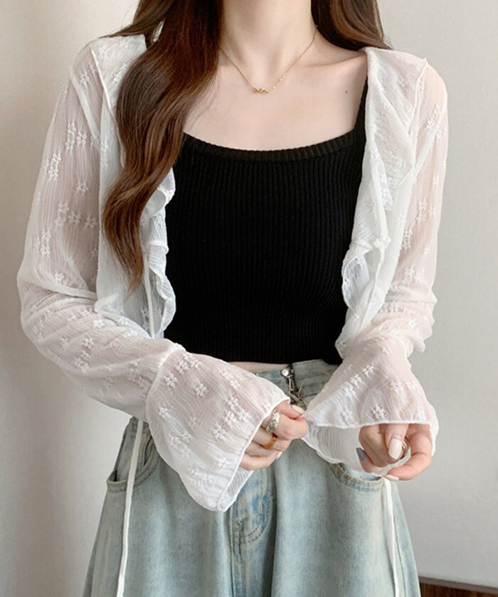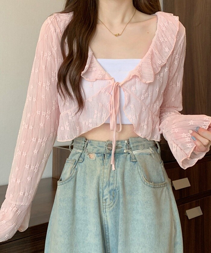 | 商品説明 | トレンドのシアー素材を使用した、軽やかで女性らしいカーディガン。小花柄とフリルディテールがフェミニンな雰囲気を演出し、ほどよい透け感が抜け感とトレンド感をプラス。フレアスリーブが手元を華奢に見せてくれ、フロントのリボンは結んで可愛らしく、オープンにしてさらっと羽織ればカジュアルにも◎デニムと合わせて甘辛ミックスに、ワンピースやスカートと合わせれば上品なフェミニンスタイルに。どんなコーディネートにもマッチする、着回し力抜群の万能アイテム。モデル身長/体重:154cm/42kgモデル着用サイズ:FREE |