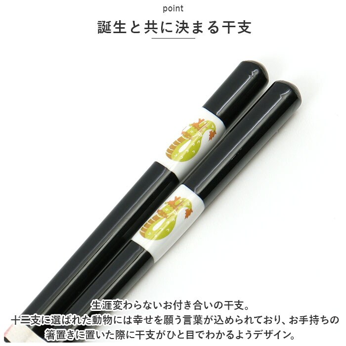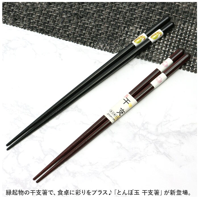 | 商品説明 | 縁起物の干支箸で、食卓に彩りをプラス♪「とんぼ玉 干支箸」が新登場。【誕生と共に決まる干支】生涯変わらないお付き合いの干支。十二支に選ばれた動物には幸せを願う言葉が込められており、お手持ちの箸置きに置いた際に干支がひと目でわかるようデザイン。【伝統の若狭塗】天然木の素地に、福井県小浜市で生産される伝統工芸品の漆器「若狭塗」の技法を用いて、ダークなカラーに仕上げたお箸。表面にアクリルウレタン塗装を施すことで、傷が付きにくいのもポイント。【使い勝手ばっちり】箸先には滑り止め加工済み。食材をつかみやすく、滑り落ちをガード。【お手入れラクラク】家庭用の食洗機を使用できるから、忙しい毎日の味方◎【選べる干支とサイズ】ご自身やご家族の干支をチョイス!お子さまも大人の方も使えるよう、2サイズをラインナップ。 |
