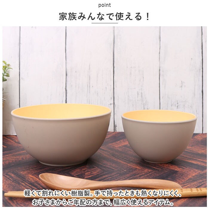 | 商品説明 | シンプルでデイリー使いにぴったり。TONES マルチボウル(Lサイズ)が新登場。【和の優しいアースカラー】アースカラーを取り入れ、マットな質感に仕上げた日本製ボウル。外側と内側で異なるバイカラーデザインもおしゃれ♪【家族みんなで使える!】軽くて割れにくい樹脂製。手で持ったときも熱くなりにくく、お子さまからご年配の方まで、幅広く使えるアイテム。【マルチに活躍】サラダや丼もの、少なめの麺類を盛り付けるのにちょうどいいサイズ感。【電子レンジも、食洗機も!】電子レンジでの温めOK。食洗機にも対応しており、使い勝手バツグン◎【うれしい抗菌加工】全面に抗菌加工を施しているので、いつも清潔。ジメジメとした夏の時期なども安心。【スタッキングOK】重ねてまとめておけるので、収納も省スペース!【どんなジャンルでも活躍】料理のジャンル問わず、食卓に馴染みやすいカラーバリエーション。ご家族分色違いで揃えるのもおすすめ。 |