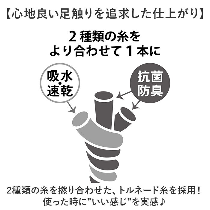 | 素材 | アクリル75%、ポリエステル25% (抗菌防臭・吸水素材) |
