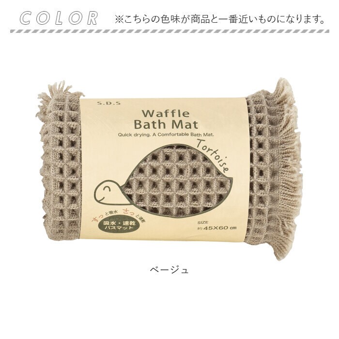 | 商品説明 | 【毎日のお風呂上がりに大活躍】体から流れる水滴を吸水!「SDS バスマット トータス2 45x60cm」。【すっと吸水して、さっと速乾!】吸水・速乾性に優れやポリエステル糸を、ワッフル生地に織り込んだバスマット♪【ふんわり快適な踏み心地も魅力】ワッフルのような見た目でナチュラル感のある仕上がり。弾力があり、足裏を優しく受け止める◎【万能で嬉しいリバーシブルタイプ】滑り止め加工を施していないので、表裏を気にせず使用可能。両面同じように使えて便利。【丸洗いできて清潔をキープ】汚れが気になったら、ネットに入れて洗濯機洗い。タオル地マットのように気軽に使える!(※)洗濯機の弱モードor手洗いモードで、他の衣類と分けて洗濯してください。一部のドラム式洗濯機では、洗濯や脱水ができない場合がございます。【自宅用にもギフトにもおすすめ】空間に馴染む温かみのあるカラー&使い勝手の良いサイズ。可愛らしい亀さんのパッケージ☆ |