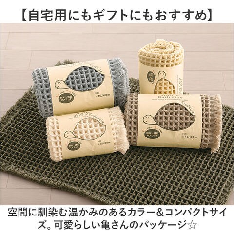 | 商品説明 | 【毎日のお風呂上がりに大活躍】体から流れる水滴を吸水!「SDS バスマット トータス2 35x50cm」。【すっと吸水して、さっと速乾!】吸水・速乾性に優れやポリエステル糸を、ワッフル生地に織り込んだバスマット♪【ふんわり快適な踏み心地も魅力】ワッフルのような見た目でナチュラル感のある仕上がり。弾力があり、足裏を優しく受け止める◎【万能で嬉しいリバーシブルタイプ】滑り止め加工を施していないので、表裏を気にせず使用可能。両面同じように使えて便利。【丸洗いできて清潔をキープ】汚れが気になったら、ネットに入れて洗濯機洗い。タオル地マットのように気軽に使える!(※)洗濯機の弱モードor手洗いモードで、他の衣類と分けて洗濯してください。一部のドラム式洗濯機では、洗濯や脱水ができない場合がございます。【自宅用にもギフトにもおすすめ】空間に馴染む温かみのあるカラー&コンパクトサイズ。可愛らしい亀さんのパッケージ☆ |