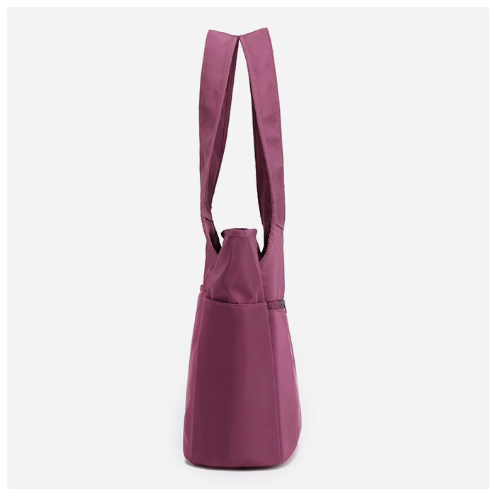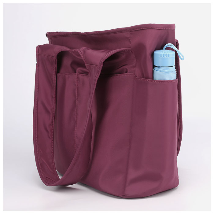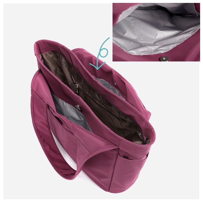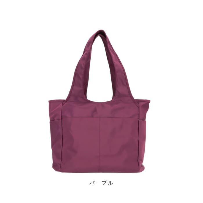 | 商品説明 | 微かな光沢を放つナイロン生地と、丸みを帯びた柔らかなフォルムが印象的!「軽量・撥水・大容量」トートバッグが新登場。メイン収納スペースはA4サイズがすっぽり入るサイズ感。開口部は天ファスナー式で、小物が飛び出す心配がなく安心。メインスペース内側には、ファスナーポケット×1・オープンポケット×2。パスケースやリップクリームなど、小物類がスッキリ片付く♪メイン収納の前後には、マグネットボタン式のあおりポケットを配置。内側はシルバーコーティング生地になっていて、濡れた折りたたみ傘や水滴で汗をかいたボトルもサッとしまえる。前面にオープンポケット×2・背面にもファスナーポケット×1とポケットが充実。スマホやパスケース、コミックも、お好みのポケットに収納できちゃう。両サイドには、ペットボトルや折りたたみ傘の収納にちょうどいいオープンポケット×2。持ち手は肩にラクラクかけられる程よい長さなので、荷物が多めになった時も持ち運びがスムーズ。通勤・通学・外出に、マルチに使えて手放せない!私だけのお気に入りバッグ♪ |