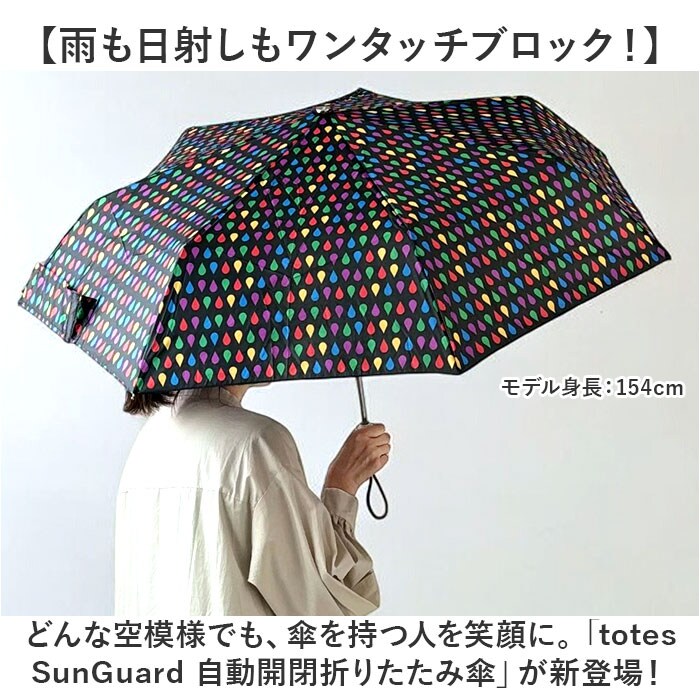 | 商品説明 | 【雨も日射しもワンタッチブロック!】どんな空模様でも、傘を持つ人を笑顔に。「totes SunGuard 自動開閉折りたたみ傘」が新登場!【傘の下はまるで木陰の涼しさ】傘が天蓋のように広がり、眩しい日射しと太陽の熱をシャットアウト。まるで木陰の涼しさを実現。【紫外線から優しくお肌を保護】ふわっと軽い傘生地が紫外線を約98%ブロック!しかもお肌の健康を気遣う女性に嬉しいUPF50+♪【ワンプッシュで自動開閉!】手元のボタンを押すだけで簡単、オートオープン仕様。片手に荷物がある時でもサッと開く♪【たたむ時も手間取らない!】玄関に入る時に傘生地がサッとまとめやすい、幅広デザインの面ファスナー式留めバンドを採用。【滑りにくいメタリックハンドル】メタリックな光沢が煌めくハンドルには、ストライプ状の溝を刻み、手のひらにしっかりグリップ。【リストストラップで楽ラク持ち運び】ハンドルの先端には手首に掛けて持ちやすく、持ち運び時の落下を防ぐリストストラップ付き。【エコフレンドリーな素材使い】ペットボトル7本分のリサイクルファブリックを傘生地に採用し、素材使いもサステナブル!【雨の日でも安心なはっ水生地】NeverWetの目に見えないコーティング加工により、水滴を玉のように弾き、4倍の乾燥度をキープ。【さりげなく光るロゴデザイン】ハンドルと石突のメタリックプレートに「totes」のロゴを刻み、見えない所もスタイリッシュに。【どんなお天気も、自分色に染まる】ベーシックカラーから、デザイン性の高いカラフルなテキスタイルまで、彩り豊かなラインナップ。【About totes -トーツ-】totes(トーツ)は、米国のレイングッズ・シェアNo.1!「トーツといえば、折りたたみ傘」と言われるほど、人気のレイングッズブランド。 |