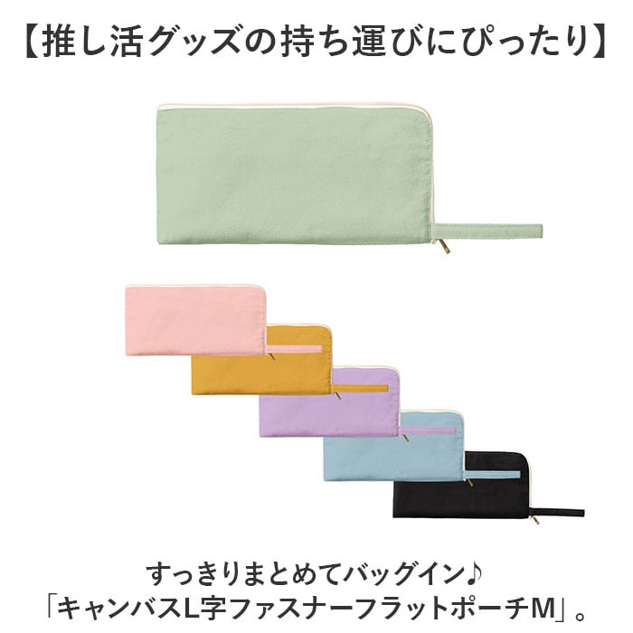 | 商品説明 | 【推し活グッズの持ち運びにぴったり】すっきりまとめてバッグイン♪「キャンバスL字ファスナーフラットポーチM」。【ライブやイベント時のお供に】ペンライトやアクリルスタンドなどを収納できるサイズ感。バッグの中で迷子知らず◎【ガバっと大きくL字オープン】開口部はL字ファスナー式。大きく開くので、アイテムの出し入れが手間取らずにスムーズ!【腕に掛けられるストラップ付き】腕掛けしたり、バッグからの取り出しもラクラク!便利なストラップを装備。【ガシガシ使える丈夫な生地感】程よい厚みのキャンバス素材を採用。へたりにくく、長く愛用できるのが嬉しい!【お気に入りを選べるカラー】ベーシックやナチュラルカラーをラインナップ。どなたでも使いやすい、シンプルデザイン◎ |