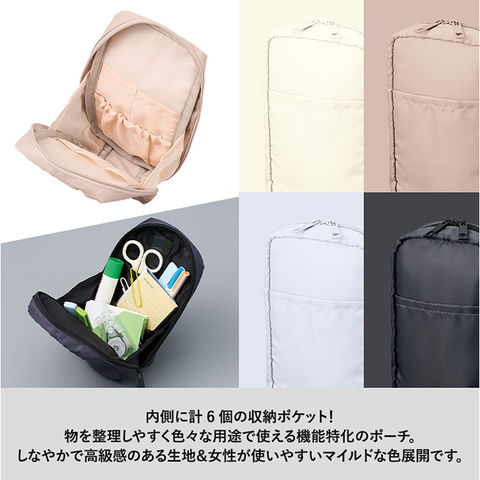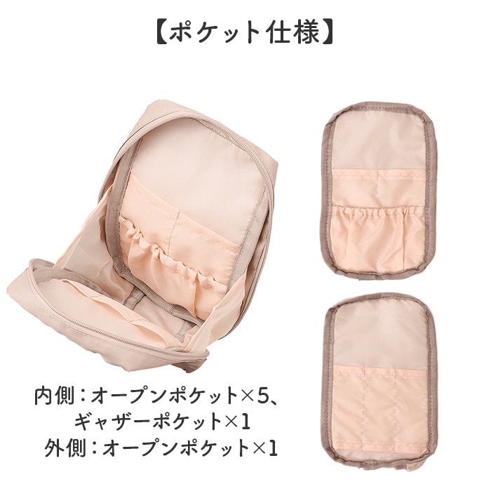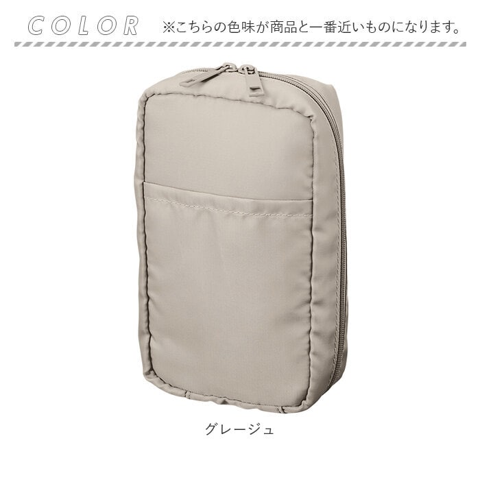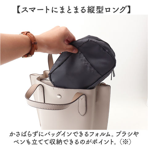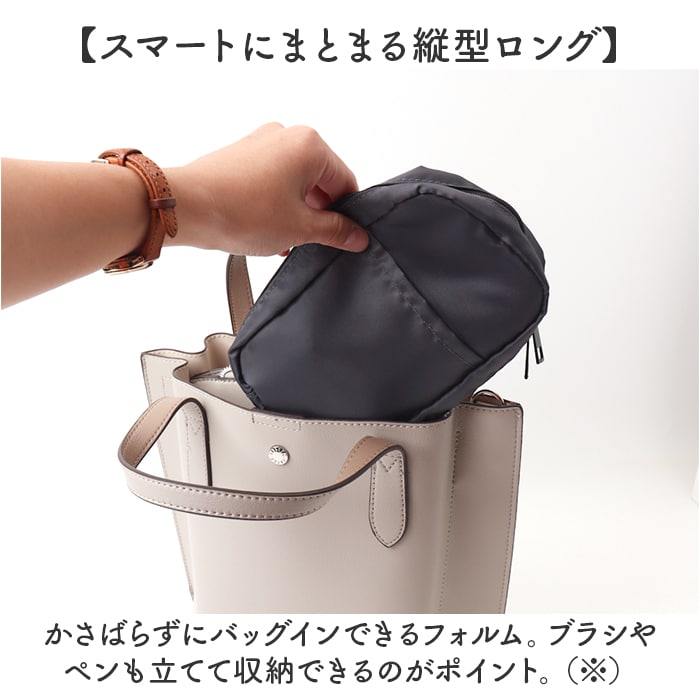 | 商品説明 | 【小物をすっきりひとまとめ】ポーチ内ですっきり整頓、バッグの中がごちゃつかない!マルチポケットポリポーチ ロング。【スマートにまとまる縦型ロング】かさばらずにバッグインできるフォルム。ブラシやペンも立てて収納できるのがポイント。(※)収納物の容量などによっては自立しますが、安定性は低いのでご注意ください。【ガバっと開くダブルファスナー】左右どちらからも、下部まで大きくオープン!中身を確認しやすく、取り出しラクラク。【普段使いのコスメが入るサイズ感】リップやアイシャドウ等、1軍コスメがすっぽり。両サイドササマチ付きでこぼれ落ちガード。【ポケット付きで収納上手に♪】内側には6個のポケット。細々したアイテムも定位置に収まるのが嬉しい!【サッと取り出せる外ポケット】シート状のメイク落としや、ポケットティッシュをIN。ヘアピンなどを挟んでもOK♪【マルチに使える万能ポーチ】充電器やイヤホンなどガジェット類を入れたり、旅行などでの持ち運びグッズをIN。【シンプルで使いやすいデザイン】しなやかなポリエステル生地を使った、ワンカラー仕上げ。年代問わず持ちやすいカラー展開◎【ポケット仕様】内側:オープンポケット×5、ギャザーポケット×1外側:オープンポケット×1 |