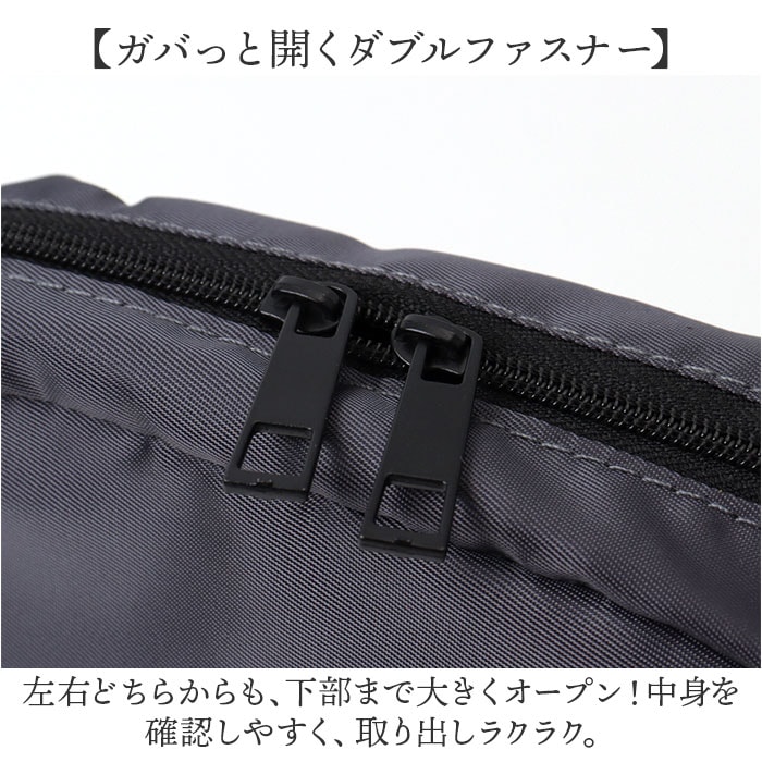 | 商品説明 | 【小物をすっきりひとまとめ】ポーチ内ですっきり整頓、バッグの中がごちゃつかない!マルチポケットポリポーチ スクエア。【スマートにまとまるスクエア型】程よいマチで、かさばらずにバッグインできるフォルム。中身を入れると自立。【ガバっと開くダブルファスナー】左右どちらからも、下部まで大きくオープン!中身を確認しやすく、取り出しラクラク。【普段使いのコスメが入るサイズ感】リップやアイシャドウ等、1軍コスメがすっぽり。両サイドササマチ付きでこぼれ落ちガード。【ポケット付きで収納上手に♪】内側には6個のポケット。細々したアイテムも定位置に収まるのが嬉しい!【サッと取り出せる外ポケット】シート状のメイク落としや、ポケットティッシュをIN。ヘアピンなどを挟んでもOK♪【マルチに使える万能ポーチ】充電器やイヤホンなどガジェット類を入れたり、旅行などでの持ち運びグッズをIN。【シンプルで使いやすいデザイン】しなやかなポリエステル生地を使った、ワンカラー仕上げ。年代問わず持ちやすいカラー展開◎【ポケット仕様】内側:オープンポケット×3、ループポケット×3(下部が縫い付けられていない仕様です)外側:オープンポケット×1 |
