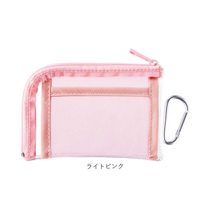 メッシュポケットクリアミニポーチ カラビナ付【ライトピンク】
