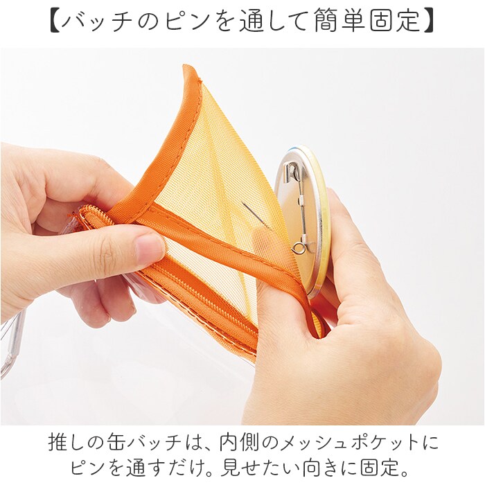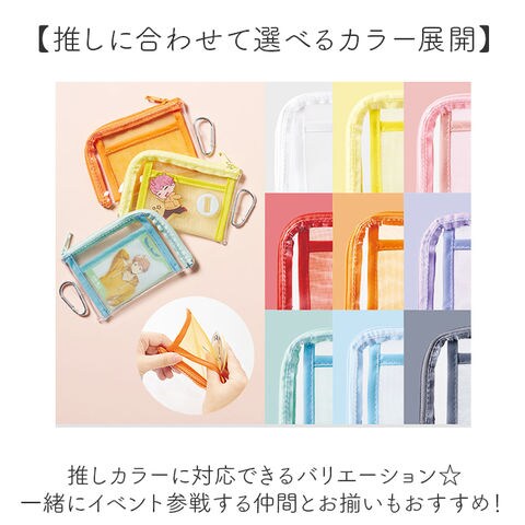 | 商品説明 | 【推し活のマストアイテム☆】推しの缶バッチを固定して持ち歩ける◎「メッシュポケットクリアミニポーチ カラビナ付」。【中身が見えるクリア仕様のポーチ】お気に入りのグッズを、可愛くデコレーション☆収納したまま楽しめるのが嬉しい!【ガバッと開いて出し入れがスムーズ】L字型に開くファスナー式。中身を確認しやすく、出し入れも手間取らない◎【定番アイテムのトレカやチェキを】仕切りメッシュポケット付き!カードアイテムや、ミニサイズのアクスタもIN。(※)収納可能カードサイズ:W88×H63mm。【バッチのピンを通して簡単固定】推しの缶バッチは、内側のメッシュポケットにピンを通すだけ。見せたい向きに固定。【チャームのようにバッグに取り付け】サイドのループには、カラビナを装備。バッグのハンドルなどに、サッと装着◎【推しに合わせて選べるカラー展開】推しカラーに対応できるバリエーション☆一緒にイベント参戦する仲間とお揃いもおすすめ!【ポケット仕様】内側:仕切りメッシュポケット×1 |