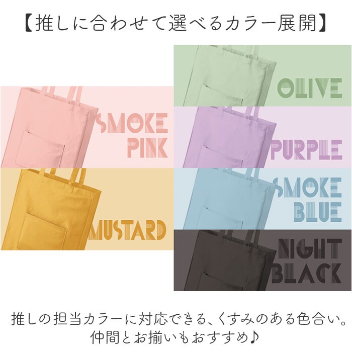 | 商品説明 | 【推し活の相棒にぴったり☆】快適に推し活!遠征などでも可愛く持ち歩ける♪「キャンバススクエアトート外ポケット付」。【どなたでも持ちやすいシンプル設計】装飾のないシンプルなワンカラー仕上げ。仕事や学校後にそのまま現場へ直行もOK!【肩掛けできて移動がラクラク】アウターの上からも、肩掛けできるハンドル。両手を自由に使えて、荷物が重くなっても大丈夫。【いつでもどこでもスムーズに開閉】ひと手間をなくしたオープン開口。ガバっと開いて、移動中もサクッと取り出し。【B4対応でざっくりひとまとめ】B4がすっぽり、スマートなマチ設計ながら、色んなグッズなども一緒に収納。【大きめのうちわもラクラクIN】推し活の定番、大型うちわが収まる仕切りポケットを配置。うちわの持ち運びがスマート♪【オリジナルカスタマイズも楽しめる】推しぬいを収納できる外ポケット付き!缶バッジやキーホルダーも装着し、自分だけのバッグに☆【推しに合わせて選べるカラー展開】推しの担当カラーに対応できる、くすみのある色合い。仲間とお揃いもおすすめ♪【ポケット仕様】内側:仕切りポケット×1前面:オープンポケット×1 |