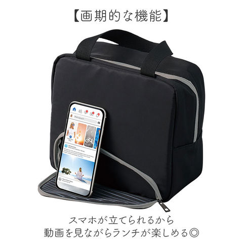 スマホが立てられるクーラーランチバッグ【009.ブラック】