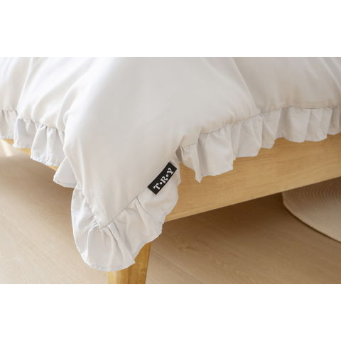 | 商品説明 | くすみカラーがフリルの可愛さを引き立てる、可愛いベッドカバー3点セット。ダブルサイズの甘すぎない3色のカラーを用意。ボックスシーツタイプで、ほこりが入りにくく、カバーもなめらかな肌触りで快適に。ご自宅の洗濯機で丸洗い可能なので、いつでも清潔を保てるのもポイント。製造時に1つずつ手作業でリボンをかけているので、ギフトにもおススメ。 |