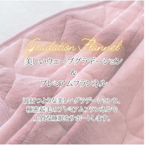 | 商品説明 | まるで日本の美しい情景の様なカラー美しく染め上げたグラデーション敷パッド。当店オリジナル製造のフランネル生地で朝までず~っと続く暖かさ!【美しく繊細なウェーブグラデ】和風のお部屋や、モダンテイストにもマッチする、シンプルかつ上品なデザイン超極細繊維が起毛することで、足先までぽっかぽか!プレミアムフランネル生地体温でじわっと発熱&保温♪※フランネル生地によるものふわふわの毛並みのような触り心地。しっとりあたたかいマイクロファイバー繊維でできたフランネル敷パッドシングル~ダブルサイズまで、豊富なサイズであなたにピッタリのパッドが見つかる!※こちらのページはシングルサイズのみの取り扱いとなります。他サイズは他ページにて展開中です。ご自宅で簡単にお手入れ◎洗濯機で洗えるから、いつでも清潔! |
