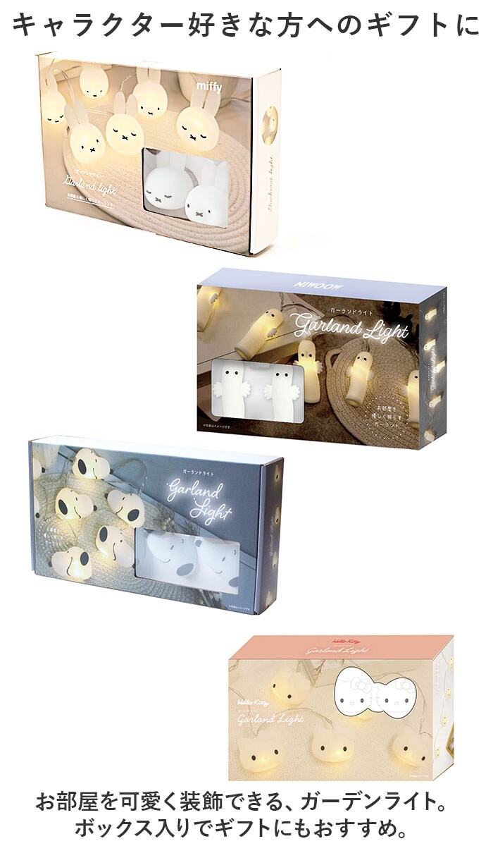 | 商品説明 | 大好きなキャラクターたちが、心地よい光を照らす♪可愛らしい「 ガーランドライト」が新登場。(対象年齢15歳以上)【優しい光でおしゃれ空間を演出】キャラクターのフォルムに象ったライトが8個連なった、ガーデンライト。柔らかな光で温かみのある雰囲気に。【1日中楽しめる2way仕様】間接照明としてはもちろん!明るい時間はインテリアとしても♪そのまま飾っておくだけでキュート!【繰り返し使えるUSB充電式】付属のUSBでもケーブルライトを使用。電池交換の手間なく、手軽に使えるのが嬉しい◎【操作も簡単。ワンタッチチェンジ】点灯・点滅・消灯は全てスイッチを押すだけでOK。【キャラクターたちに心もほっこり】愛らしい表情のキャラクターたち。リラックスタイムに癒やしをプラス。【キャラクター好きな方へのギフトに】お部屋を可愛く装飾できる、ガーデンライト。ボックス入りでギフトにもおすすめ。 |