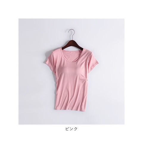 Tシャツ ルームウェア カップ付 ヨガウェア tsy013【ピンク】【L】