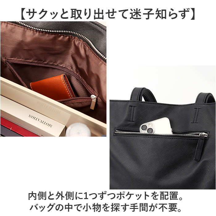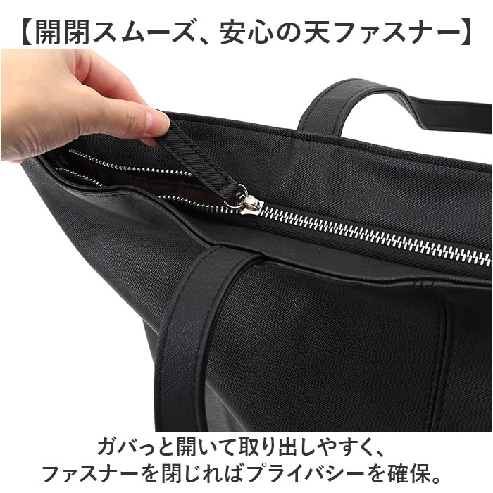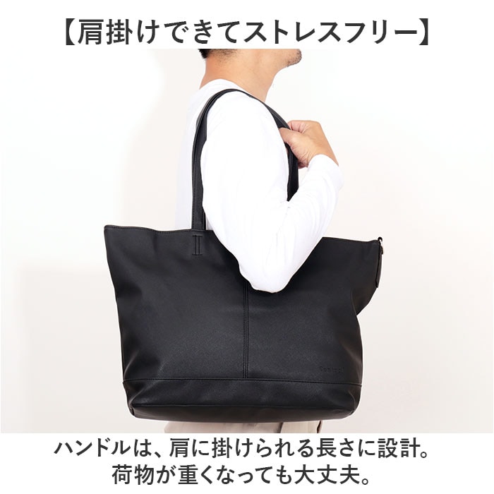 | 商品説明 | 【大人のコーデに素敵にマッチ】色んなシーンで相棒に。かっこよくキマる「Control シンプル合皮トートバッグ」。【オン・オフ問わず活躍間違いなし】丈夫なフェイクレザーに、ボディと同色のステッチをプラス。スタイリッシュな印象を演出。【開閉スムーズ、安心の天ファスナー】ガバっと開いて取り出しやすく、ファスナーを閉じればプライバシーを確保。【A4対応◎頼りになる収納力】A4サイズがすっぽり。マチもあり、通勤や出張、1泊程度の旅行にもおすすめ。(※)B4サイズは角が折れたり、ファスナーが閉まりにくい可能性があります。【サクッと取り出せて迷子知らず】内側と外側に1つずつポケットを配置。バッグの中で小物を探す手間が不要。【肩掛けできてストレスフリー】ハンドルは、肩に掛けられる長さに設計。荷物が重くなっても大丈夫。【飽きが来ず長く愛用できるアイテム】ワンカラーのボディに、シルバーのメタルウェアがアクセント。フロントには型押しロゴ入り。【使い心地を追求したControl】アウトドアやワークスタイルにも使える機能性とデザインが魅力。【ポケット仕様】内側:ファスナーポケット×1背面:ファスナーポケット×1 |