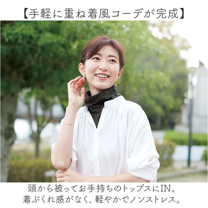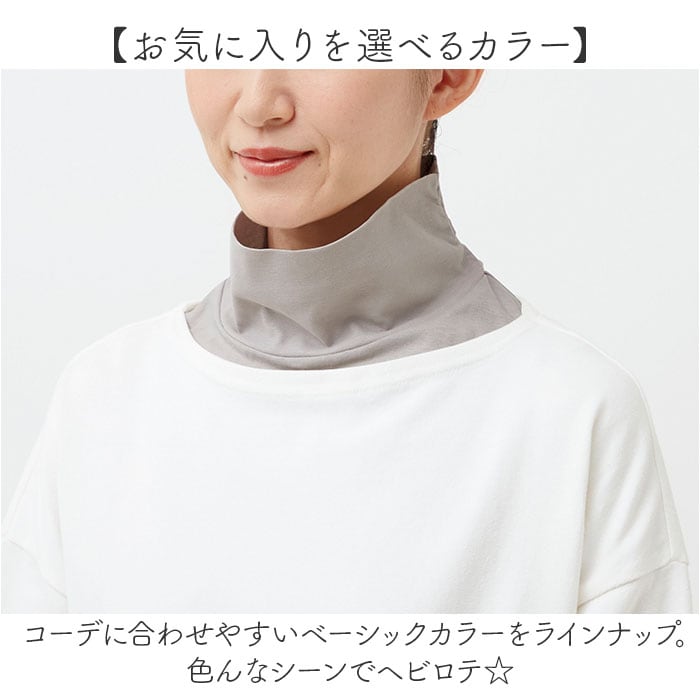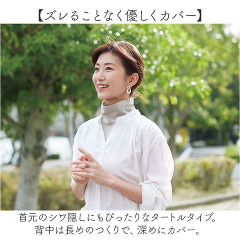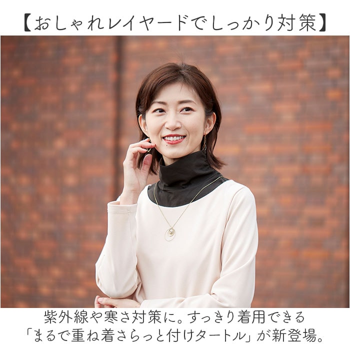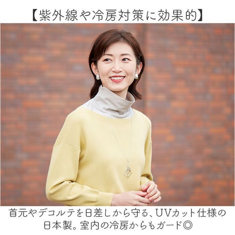 | 商品説明 | 【おしゃれレイヤードでしっかり対策】紫外線や寒さ対策に。すっきり着用できる「まるで重ね着さらっと付けタートル」が新登場。【手軽に重ね着風コーデが完成】頭から被ってお手持ちのトップスにIN。着ぶくれ感がなく、軽やかでノンストレス。【紫外線や冷房対策に効果的】首元やデコルテを日差しから守る、UVカット仕様の日本製。室内の冷房からもガード◎【ズレることなく優しくカバー】首元のシワ隠しにもぴったりなタートルタイプ。背中は長めのつくりで、深めにカバー。【保冷剤をプラスして熱中症予防】首の後ろに、保冷剤が入る内ポケットを装備。首元ひんやり、夏場も快適。【さらりと清涼感のある綿100%】シャリ感やコシがあり、通気性に優れた強撚糸コットン。汗ばむ季節もムレを軽減。(※1)強撚糸とは、糸をねじり合わせることで強度を高めた素材です。【寒さ対策にも使えて便利】首元の冷えが気になる季節にも!シーズンレスで活躍できて万能な、日本製アイテム。【メイクをしていても着脱スムーズ】伸縮性があり、ガバっと開いてメイクが付きにくい!ヘアスタイルも崩れず安心。【丸洗いできてお手入れラクラク】汚れが気になったら、洗濯機洗いOK。いつも清潔をキープ。(※2)洗濯機の弱モードをご使用ください。【お気に入りを選べるカラー】コーデに合わせやすいベーシックカラーをラインナップ。色んなシーンでヘビロテ☆ |