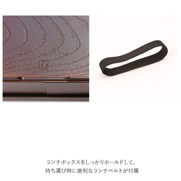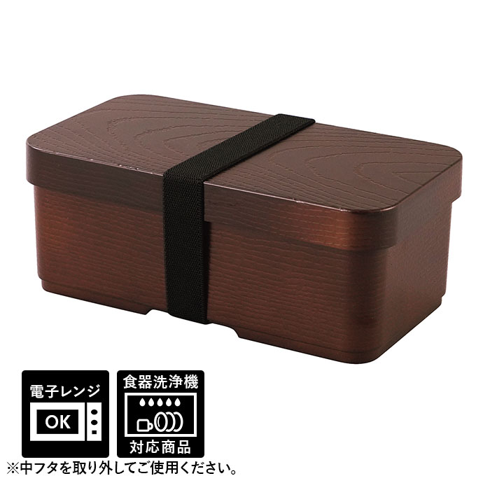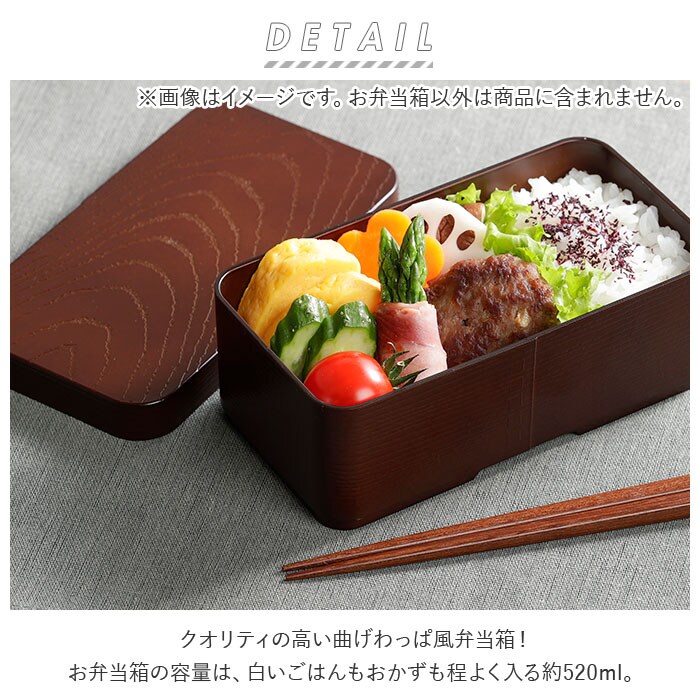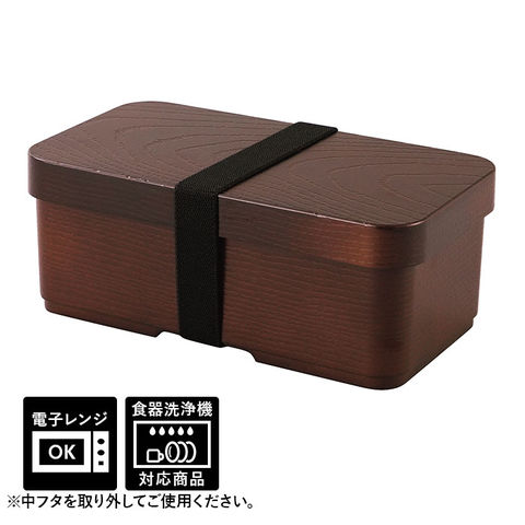 | 商品説明 | シックで高級感がある!クオリティの高い曲げわっぱ風弁当箱!お弁当箱の容量は、白いごはんもおかずも程よく入る、ダイエット中の方やOLさんのランチにちょうどいい約520ml。使い勝手のよいシンプルな角型に、飽きのこない木目調デザインで、オフィスや学校でのランチタイムにぴったり。曲げわっぱ風のレトロな見た目なのに、家庭用電子レンジでの温めや、食器洗い洗浄機の使用もOK!お手入れがとってもラクチン。(※中蓋は電子レンジや食器洗い乾燥機でご使用いただけません。取り外してご使用ください。)中蓋付きで汁漏れしにくく安心♪ランチボックスをしっかりホールドして、持ち運び時に便利なランチバンドが付属。 |