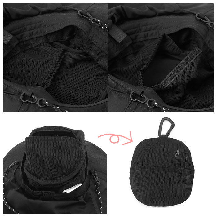| 商品説明 | 親子でお揃いがうれしい撥水ポケッタブルサンシェードハットが登場。紫外線を99.9%カットする機能性生地(UPF50+)に、はっ水加工をプラス!夏の日差し除けや突然の雨対策に最適♪日除けカバー付きなので首元も安心。使わない時は日よけカバーをつばの裏側に収納ができるのもうれしいポイント!素材が柔らかいので、折りたたみができてコンパクトに収納ができる!さらにカラビナ付きなのでバッグに常に付けておけて便利。長さ調節や取り外しのできるあご紐付きで、風の強い日や自転車でも安心。頭周りもゴムで調節が可能なので自分だけのぴったりサイズになる。野外フェスやアウトドアはもちろん普段使いでも大活躍♪ |