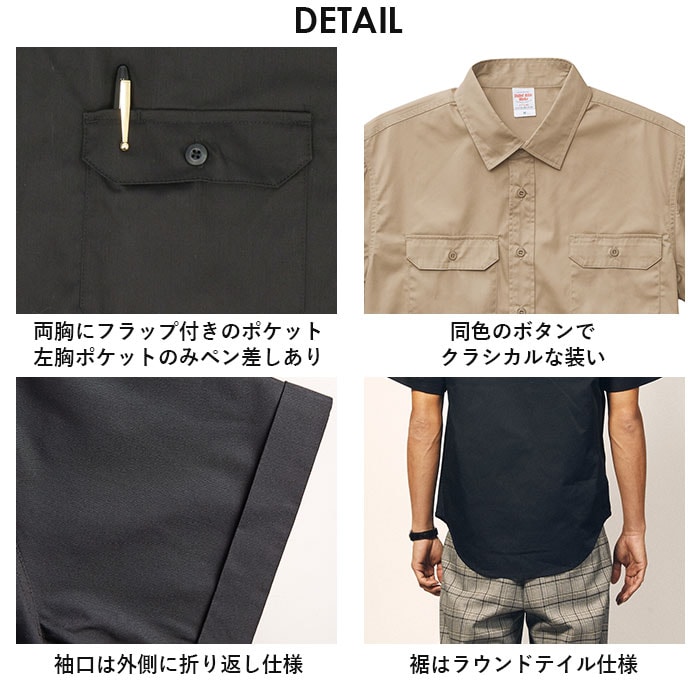 | 商品説明 | 「無地」を追求したシンプルさが魅力のUnited Athle(ユナイテッドアスレ)から、メンズサイズのワークシャツが登場!ワンカラーのシンプルなデザインながら、アームホールや肩ヨークの2本針チェーンステッチなど、クラシカルな縫製仕様がポイントのワークシャツ。両胸にはフラップ付きのポケットを装備。左胸のポケットにはペン差しが付いているので、作業中にペンを差しておけて便利。裾部分はラウンドテイル仕様になっており、パンツアウトスタイルでもおしゃれさが際立つデザイン♪袖口は外側に向かって折り返し仕様。シンプルさの中でも細部にまでこだわりが表現されたアイテム。前ボタンをしめて1枚で着るのはもちろん、ボタンを開けて羽織るスタイルもおすすめ♪ |