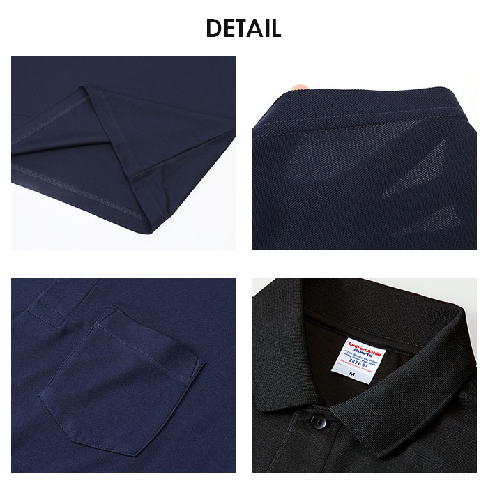 UnitedAthle ユナイテッドアスレ 4.7オンス 長袖ポロシャツ【002.ブラック】【Sサイズ】