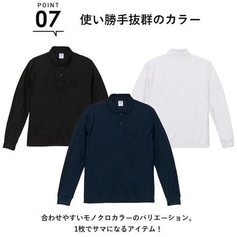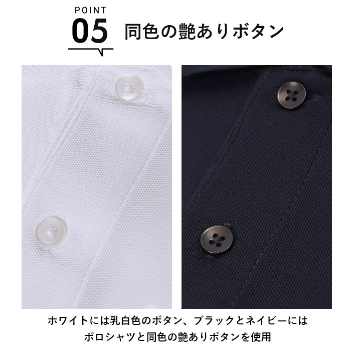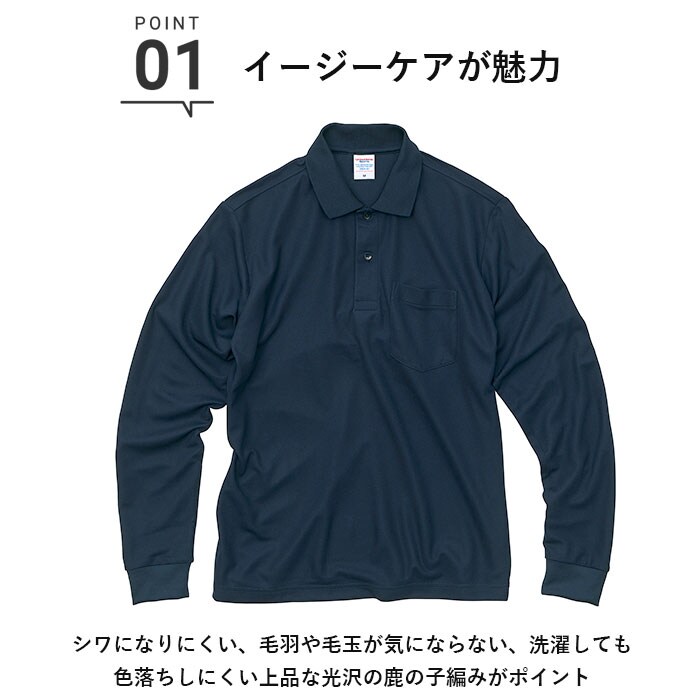 | 商品説明 | イージーケアが魅力のドライカノコシリーズから、4.7オンスの長袖ポロシャツが発売。素材はポリエステル100%。シワになりにくい、毛羽や毛玉が気にならない、洗濯しても色落ちしにくい上品な光沢の鹿の子編みがポイント。汗ばむ季節に嬉しいDRY吸水速乾仕様。通気性に優れ、快適な着心地◎UVカット機能もあり、夏の紫外線対策にラッシュガードのように使ってもOK。形状安定加工されているから、洗濯後のお手入れがラクチン。ホワイトの生地には特殊な糸を使用し、着用時の透け感を軽減!左胸にポケット付き。袖口は伸縮性のあるリブ仕様。作業をする際など、袖の長さを短くしたい時にズレ落ちにくい◎ホワイトには乳白色のボタン、ブラックとネイビーにはポロシャツと同色の艶ありボタンを使用。 |