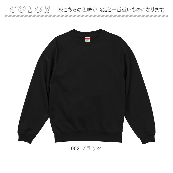 UnitedAthle ユナイテッドアスレ ラグランスリーブ スウェット【002.ブラック】【Lサイズ】