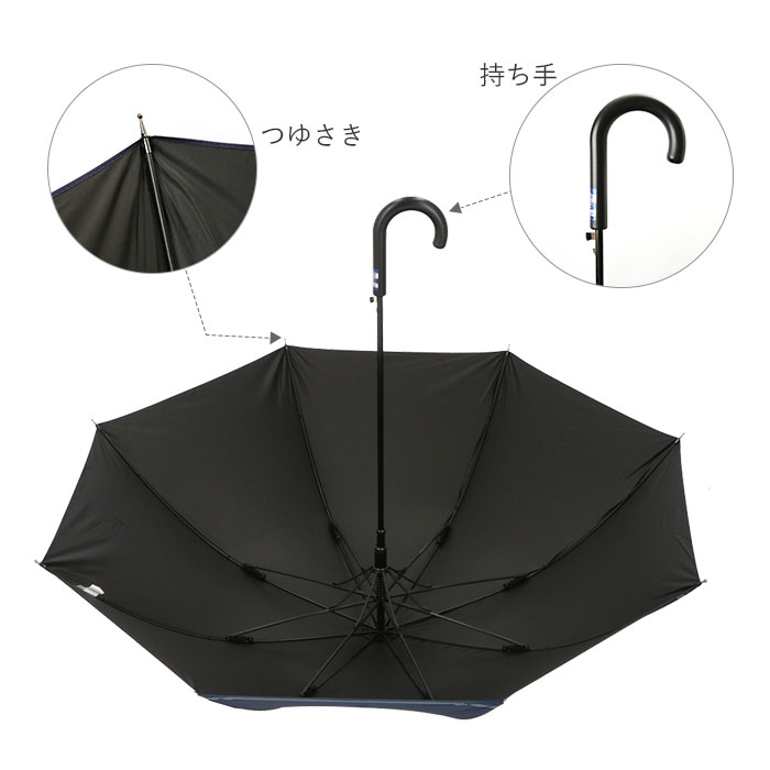 | 商品説明 | 雨の日も晴れの日も使える♪雨晴兼用傘が発売。(親骨65cmタイプ)親骨には弾力性があり折れにくいグラスファイバー素材を使用。風で傘が裏側にひっくり返っても元に戻るZ骨を使用した耐風設計。傘生地の内側にはブラックコーティングを施し、UPF50+、UV99.9%カット、紫外線遮光率100%の一級遮光!片手でサッと開きやすい、ジャンプ式。手荷物を持っている時でもワンタッチで簡単開閉。傘生地を留めるバンドは、パチンと留めるだけのスナップボタン式。つゆさき部分にもバンドが付いているから傘の広がりを抑えスマートに持ち歩ける。持ち手部分はマットブラックのプラスチックハンドルでとっても軽量。コーディネートを選ばないシンプルなデザインだからビジネスシーンにも◎ |