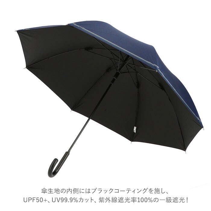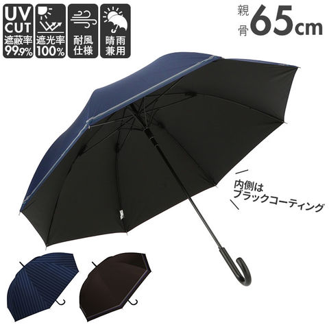 UPF50 雨晴兼用 長傘65cm【シャドウストライプブラック】