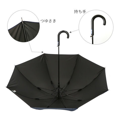 | 注意点 | 傘生地は濃い色のプリント色から淡い色へ色が移る移行昇華という現象が見られる場合があります。現在の染色技術では完全に防ぐ事ができません。ご了承下さい。製品には尖った部分があります。開閉時には常に周囲の安全を確認して、顔や体から離してご使用下さい。ご使用の際、傘をよく振って生地をほぐしてからゆっくりと開いて下さい。急に開かれますと破損の原因になります。傘生地は色落ちする場合がありますので十分に乾燥させてから保管して下さい。濡れたままでの衣類などその他の物への接触はお避け下さい。生地の表面を擦らないようにして下さい。(濡れたまま放置したり、生地の表面を擦ったりすると防水・撥水力の低下や骨の劣化に繋がります。)傘生地には防水・撥水加工がしてありますが、降水量が20mm以上の激しい雨で長時間使用された場合など漏水の恐れがありますのでご注意下さい。防水・撥水効果はある程度ご使用頂きますと低下していきます。長くご使用頂く為には市販の防水スプレー等を合わせてご使用頂く事をお勧めします。部品が破損・欠損した場合は直ちに使用を中止して下さい振り回したり、投げたりしないで下さい。台風や強風時は、骨が曲がったり破損する恐れがありますので使用しないで下さい。ステッキがわりに使用しないで下さい。高温・直射日光のあたる場所に長時間保管しないで下さい。お子様には保護者の方からご注意下さい。傘を開いた状態で、急激に回転させますと破損する恐れがあります。思わぬ怪我につながる場合があり危険ですのでお止めください。[グラスファイバー骨のお取り扱いについて]この製品の骨は軽くて折れにくいガラス繊維強化プラスティック(グラスファイバー)を使用しています。骨が折れたり、ささくれたりした場合は、手や指にガラス繊維が刺さる恐れがあります。骨には素手で触らないようにご注意下さい。カメラやモニターの性質により、画像と実物の色の違いがある場合がございますのでご理解願います。 |