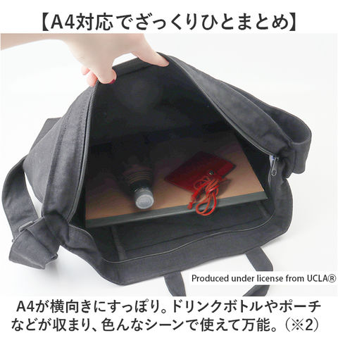 | 商品説明 | 【インパクトのあるおしゃれなバッグ】コーデのポイントに!AMERICAN COLLEGE 2WAY SHOUDER BAG。【カジュアルなカレッジスタイルに】ナチュラルな風合いのキャンバス生地。BRUIN Bearのプリントデザインが印象的☆(※1)BRUIN BearはUCLAのマスコットキャラクターです。【お好みに合わせてスタイルチェンジ】短いハンドルで手持ち。ショルダーの長さを超せちゅして、肩掛けも斜め掛けも自在な2WAY◎【開閉スムーズ、安心のファスナー式】大きく開いて取り出しやすく、ファスナーを閉じれば中身の飛び出しをガード。【A4対応でざっくりひとまとめ】A4が横向きにすっぽり。ドリンクボトルやポーチなどが収まり、色んなシーンで使えて万能。(※2)B4も収納可能ですが、底マチよりも横幅が広いため、フォルムが崩れる可能性があります。【サクッと取り出せて迷子知らず】内側に吊りポケット、背面にもポケットを配置。スマホや小物も、バッグの中で探す手間が不要。【お揃いOK☆ユニセックスデザイン】性別・年代問わず持てる仕上がり。家族やカップルでお揃いやシェアも☆ 【UCLA / University of California Los Angels】 カリフォルニア大学ロサンゼルス校・・・カリフォルニア州の大学で学生数が最も多い総合州立大学。大学の略称はUCLA。 アメリカ西海岸に位置するUCLAは燦々と降り注ぐ太陽のもと、キャンパスライフもファッションの一部として多くの若者の支持を集めています。 230人以上のオリンピックメダリストを輩出しNCAAで過去113回優勝を獲得するなど世界的に活躍するアスリート校としても有名である。 世界中のカレッジアパレルの中でも特に人気があり、ヴィンテージロゴ、キャラクターのBRUIN Bearなども有名です。 Produced under license from UCLA(R) |