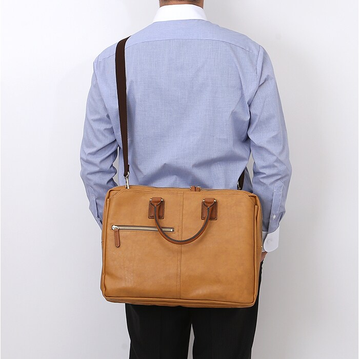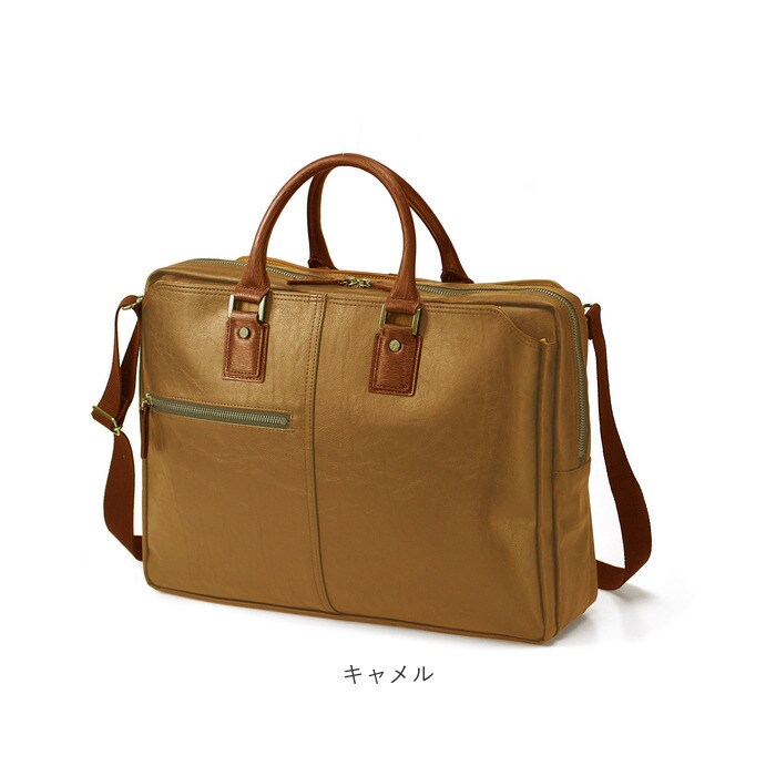 | 商品説明 | 【ビジネスシーンのお供に♪】見た目や機能性がハイクオリティなBAGGEXシリーズ暁からビジネスバッグが発売。【本革のような仕上がり】表地は本革のようなシボ感か特徴の合皮を採用。お手入れが必要なくラフすぎない見た目に。【毎日使っても安心の強度】ソファにも使われる強度の高い生地を使用し、毎日使っても生地が傷みにくく長持ち。【PCやB4ケースもラクラク収納】大きめの書類ケースにも対応可能なB4サイズ!ノートPCやタブレットの収納もOK。【専用のホルダー付きで安心】独立されたノートPCやタブレットホルダーをメインルームに搭載。クッション入りで安心。【整理して収納!あおり付き】背面と前面にあおりポケットを設け、小物を用途に分けて収納可能。【細々とした小物も整頓】ペン挿しやオープンポケットなど、細々とした小物をすっきり収納できるポケットも完備。【2WAYで使える便利さ】ショルダーベルトを付属し、斜め掛け肩掛けもでき持ち運びが楽な仕様なのも魅力的。【人やシーンを選ばないデザイン】シンプル&スマートなデザインなので、いつでも誰でも使用可能☆【安心のクオリティ】安心と信頼のメイドインジャパン!品質にもこだわったアイテム。【ポケット仕様】メインルーム・・・タブレット・ノートPCホルダー×1、ファスナーポケット×1あおりポケット(前)・・・ペン挿し×2、オープンポケット×2あおりポケット(後)最前面・・・ファスナーポケット×1 |