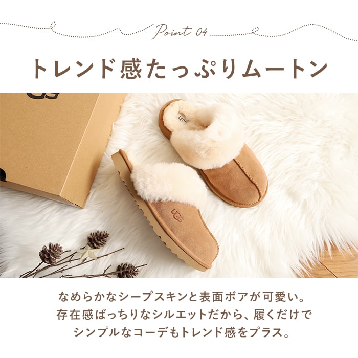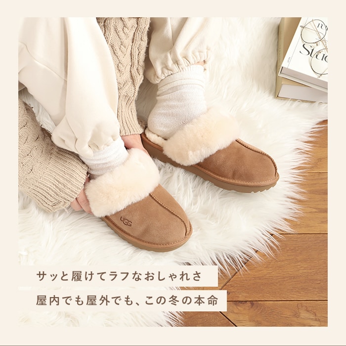 | 素材 | [アッパー]スエード [アッパー(履き口)]シープスキン [ライニング]天然ウール [アウトソール]Treadlite by UGG(TM)※ ※トレイドライト・バイ・アグ:軽さと柔軟性・耐久性・クッション性とグリップ感を高めた新構造のアウトソール |