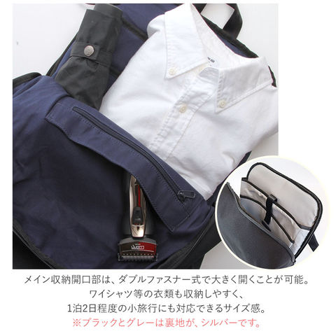 | 注意点 | この製品は、はっ水加工を施した生地を使用しておりますが、防水構造ではありませんので、強い雨の中での使用などでは、製品上縫い目等の部分から浸水する恐れがありますのでご注意ください。また、経年により撥水加工が低下してまいりますのでご注意ください。この製品の素材は、雨や汗などの水分に濡れた場合や、生地との摩擦、ベンジン等の使用により、色ムラやシミ、風合いの変化、または色落ちをして衣服等を汚す場合がありますのでご注意ください。日常のこまめなお手入れが肝心です。長い間放っておきますとカビが生じたり、金属にサビが生じたりしますので通期のよい場所に保管し、時々、から拭きをして防ぐようにしてください。高温な場所、(例えば車中など)や、ストーブの側に置いたりしますと鞄が変形したり、長時間日光に当てると変色する恐れがありますので、放置しないようにしてください。ファスナーを開閉する時には、スライダーを平行に正しく引き、異物を挟まないでください。ショルダーベルトをご使用の場合は、服地の種類によっては摩擦などの影響が出る恐れがありますので十分ご注意ください。ショルダーベルトの長さを調節する場合、肩紐にふくみを持たせ、ゆっくり調節してください。調節金具を引っ張ると生地に傷が生じる恐れがあります。重い物品を入れてご使用になる場合、本体生地に重みが掛かり、わずかな摩擦や引っかけ等で傷が生じる恐れがありますのでご注意ください。鞄は雨に濡れますと、色々な箇所に支障を起こす場合がありますので、特に雨のひどい時などは、濡らしたり、内部に水が入ったりしないようにご注意ください。カメラやモニターの性質により、画像と実物の色の違いがある場合がございますのでご理解願います。 |