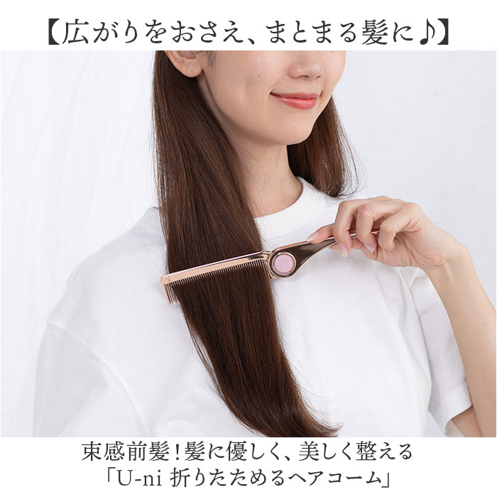 U-ni 折りたためるヘアコーム【ピンクゴールド】